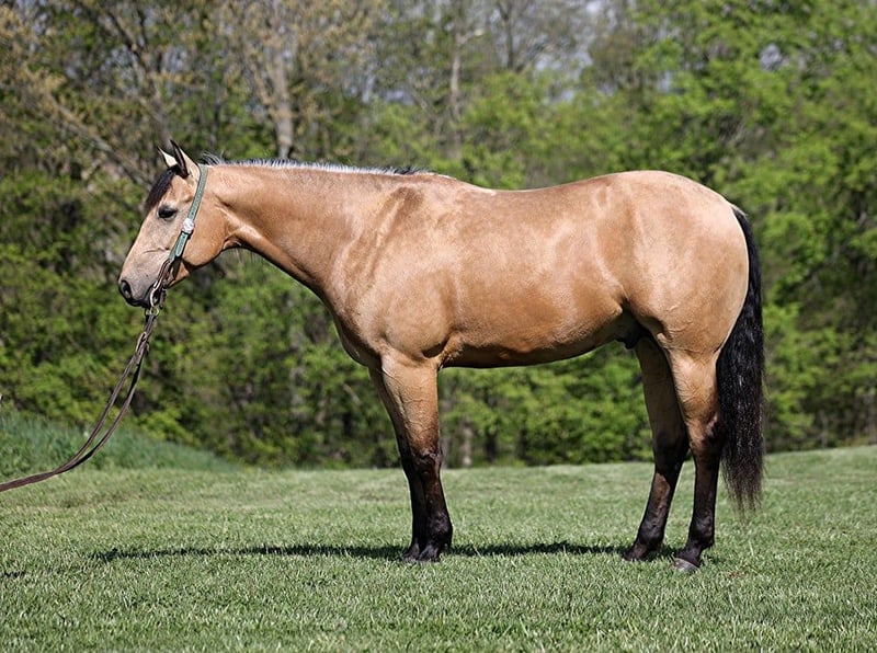 Consigned to Cowgirl Cadillacs in Sheridan, WY. Sales June 14-15th. You can bid online, phone bid or bid in person! School is out and check out STE SHINING DIAMONDS report card; he gets an “A” in every category while being all “B’s”… BIG, BEAUTIFUL, BRAINS, BROKE and BUCKSKIN!!! Shiner is a stout built 15.2hh+, 5 year old, golden buckskin, registered AQHA gelding! He has a great pedigree with MR RED BARON, TWO EYED RED BUCK and SHINING SPARK on his papers. Shiner has done it all while working at the feedlot, from sorting, to roping/doctoring, to loading trucks and penning. He is no stranger to the bright lights, loud speakers and crowds as he has been hauled to ranch rodeos and competed in every event. He has done team sorting competitions and Shiner has been started out of the roping box. He has had reining training and would make an excellent horse for ranch shows. Shiner is a pretty boy but he likes to get out on the trails and get dirty as well! He has been rode in rough, rocky country with steep elevations. He takes his time and picks where each foot goes as careful and thoughtful as a horse could be. He will cross deep water, boggy mud, slick rocky surfaces and ease over deadfall. Shiner is a laid back, gentle type of horse that is totally content to mosey along down the trails with the kids riding him and loves going on trail rides. He will cross creeks, ditches, logs and navigate rough rocky areas. He is safe riding through town and in all types of traffic. He has a smooth jog, a very nice lope, a good stop, spins both ways, sidepasses and backs with ease! Shiner has been exposed to all kinds of wildlife and is not spooky. He has a lot of personality, he loves attention and has been ridden all over our ranch by the kids and he is sure to suit riders of all ability levels! Shiner is a horse that can do any job that is asked of him, do it with ease and look good while doing it! Grab your pen and paper, get ready to give him your own report card… We believe that you will give him all A’s just as we did!