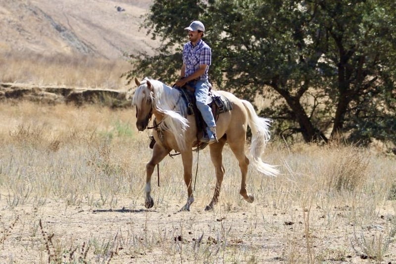 ONLINE AUCTION Place your bids at www.PlatinumEquineAuction.com Starting Bid $3500 Auction ends October 13th, 2024 Need a new saddle? Check out White Rock Saddles on our website or Facebook! Longhorn Ranch is proud to present I’m A Smooth Trigger aka Trigger , a stunning APHA 15.2 hand 2020 palomino gelding whose long, lustrous mane flows like golden silk in the breeze. If you’ve been searching for that perfect horse to complement your adventures, look no further Trigger has a gentle nature and playful personality, he’s not just easy to be around; he’s also a reliable companion whether you’re on the ranch gathering cows or navigating through diverse terrains. His smooth gaits make every ride a pleasure as he transitions effortlessly from trot to canter and back again with an elegant collected headset that speaks volumes of his training. Imagine him strutting proudly in English tack at the arena or trotting along scenic trails you’ll see heads turn wherever you go! And let’s not forget about his potential; with those graceful strides and calm disposition, who knows? He could even shine as a barrel horse if you’re feeling adventurous! Trigger adapts beautifully to any environment, making him suitable for both pasture life and stall living while handling time off like a champ. In busy traffic situations or alongside pedestrians, he remains unflappable cars and semis are nothing but passing sights to this impressive boy. So if you’re looking for that long-term partner who embodies both poise and charm in equal measure, Trigger is absolutely your man. He hauls great easy to clip tie and bath. Please contact Longhorn Ranch Dina 831-537-1915 Located in Paicines, CA. ONLINE AUCTION Place your bids at www.PlatinumEquineAuction.com Starting Bid $3500 Auction ends October 13th, 2024 Need a new saddle? Check out White Rock Saddles on our website or Facebook!
