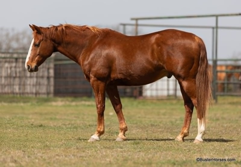 ONLINE AUCTION Place your bids at www.PlatinumEquineAuction.com Starting Bid $3500 Auction ends April 27th, 2025 Need a new saddle? Check out White Rock Saddles on our website or Facebook! Abe is a super fun horse – just the right size at 14.2 and thick made, he seems bigger than he is because he’s long legged and big bodied!!! He is only 6 years old and has his whole life in front of him. He has a great personality, extremely kind and willing and he loves to have a job. He is the same horse if you turn him out for a month, or if you ride them every day. He is content to go anywhere in a group if you ride out, he’ll ride next to a horse, behind all the horses, or he will lead the pack confidently! He rides on a big loose rein – and always has his ears up looking around, excited to go see the next thing there is to see. He hops right on the trailer and hauls quietly, and ties, saddles, bridles, and is great with his feet for the farrier. He is extremely honest and kind – our camera lady kinda panicked and bailed shooting because she was terrified… but check out the video where his loping bosal becomes untied -RIGHT ON the side of the highway!!! He just hung out and stopped while the rider reached up and re-tied it. He is a sweet, fun, kind horse. He has enough athletic ability and handle to go use on the ranch or would be great in the turn back pen – and he has been lightly started in the roping pen on both the head and the heel side. Abe just wears front shoes and his feet were just reset last week. His teeth were just done by our equine dentist two weeks ago, and he also had his sheath cleaned, his ears preemptively treated for ticks, and was dewormed at that time. He is in great shape, just a hair on the fat side, but is plenty fit enough to go right to work. He is an easy keeper and in good health. Watch his video, and to see additional videos, go to our website: BusterHorses.com or our Facebook page Buster Horses or call Ashley with Buster Horses 214-605-7174 for more info. Abe is located in Weatherford, TX – one hour from Dallas / Fort Worth International Airport. He is an easy day trip, or fun overnight trip to come and try out, from anywhere! We are experienced, knowledgeable sellers, and we can help with quickly arranging affordable shipping to any buyer’s location – we have experience shipping worldwide – including regularly to Hawaii, Canada, Mexico, Europe, and South Africa. Check our website for buyer reviews, more videos of Abe, additional info, etc: BusterHorses.com/Abe ONLINE AUCTION Place your bids at www.PlatinumEquineAuction.com Starting Bid $3500 Auction ends April 27th, 2025 Need a new saddle? Check out White Rock Saddles on our website or Facebook!