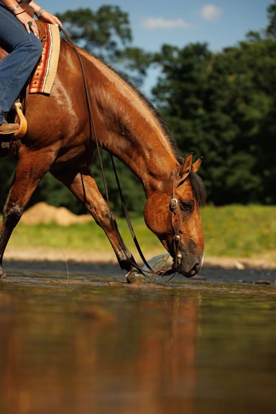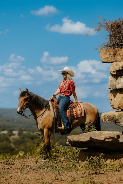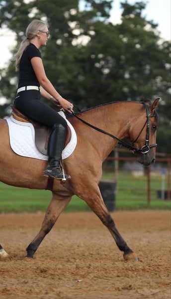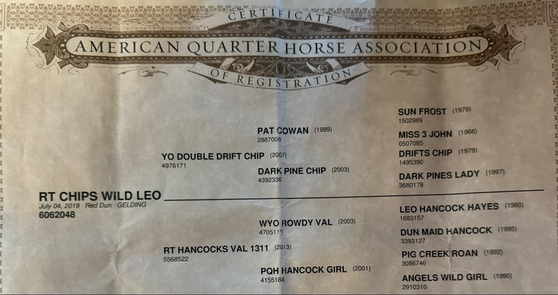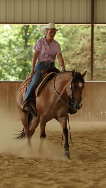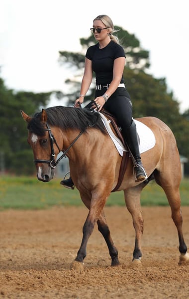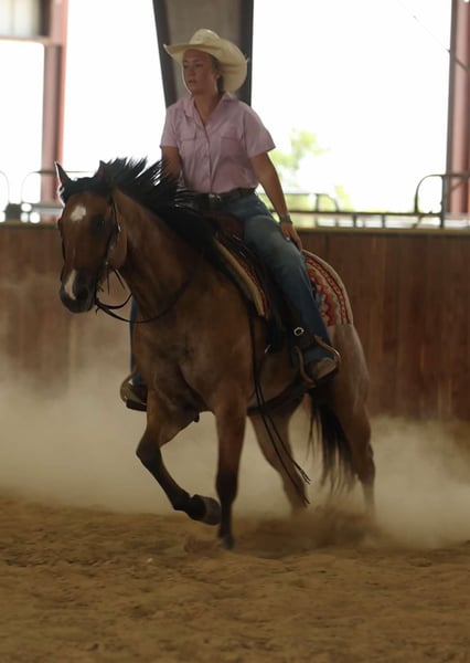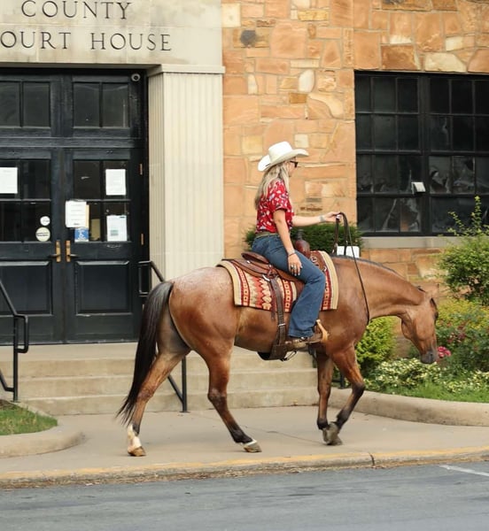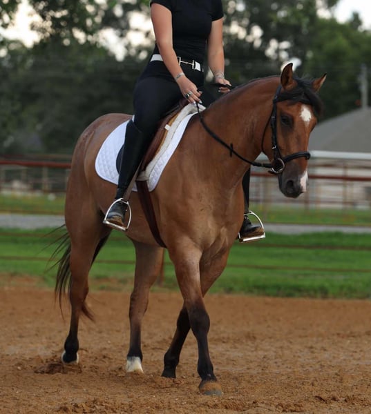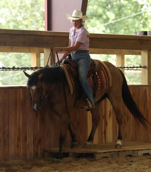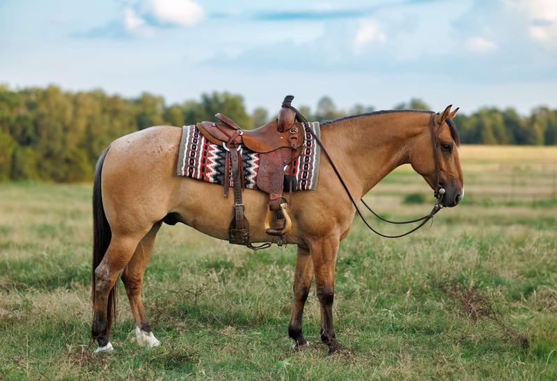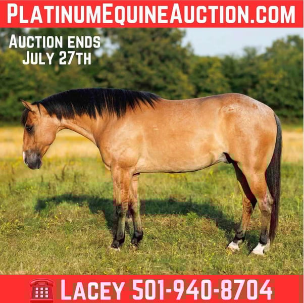 ONLINE AUCTION Place your bids at www.PlatinumEquineAuction.com Starting Bid $3500 Auction ends July 27th 2025 Need a new saddle? Check out White Rock Saddles on our website or Facebook Meet ART Chips Wild Leo aka Chip — the kind of gelding that makes you smile the moment you see him and keeps you grinning long after you hop off. Born in 2019 and registered as RT Chips Wild Leo, Chip is a 14.3 hand flashy dun roan with that “look at me” presence, a heart of gold, and a try-hard attitude that’ll take you wherever you want to go. But don’t let the pretty face fool you — Chip has brains, heart, and a whole lot of try. This is the kind of horse that wants to connect. He’s the first one to meet you at the gate, ears up, eyes soft, just waiting to see what the plan is for the day. He genuinely likes people — not just tolerates them — and he puts his whole heart into whatever you ask. He’s affectionate, a little goofy in the sweetest way, and carries himself with an easygoing confidence that makes him an instant favorite wherever he goes. He’s got just the right mix of sensitivity and forgiveness — tuned in enough to respond to your seat and body, but not reactive or over-emotional. He’s been hauled to the sale barn, seen the sights, heard the sounds, and stayed cool-headed through it all. Trail rides? He’s your go-to. Hills, mud, open fields, tight woods, solo or in a group — he handles it all like a seasoned pro. He’s brave, steady, and totally drama-free. Crossing water? Loves it—give him a creek, pond, or puddle, and he’s all in. Chip rides confidently in english tack with great movement, a natural carriage, and a lovely, balanced trot that’s easy to sit or post. He picks up both leads cleanly, carries himself softly, and has an understanding of leg aids, lateral work, and seat cues. And talk about handy… Chip side-passes right up to any mounting block, log, rock, or fence like he read your mind. No circling, no frustration — just a quiet, trained response. Whether you’re mounting from the ground or using a block, he stands like a statue and waits for your cue. He leads quietly, respects your space, and stands tied without fuss whether you’re grooming, tacking up, or just chatting nearby. He’s good for the farrier, patient during baths, and calm in the barn whether it’s busy or quiet. He rides western, english, bareback, and even bridleless — so whatever your discipline, Chip’s ready to suit up (or strip down) and go along for the ride. If you’re on the hunt for a horse with a big heart, a bigger personality, and all the buttons to boot — look no further than Chip. For more info contact Lacey Wilf 501-940-8704 Located in Quitman, AR. ONLINE AUCTION Place your bids at www.PlatinumEquineAuction.com Starting Bid $3500 Auction ends July 27th 2025 Need a new saddle? Check out White Rock Saddles on our website or Facebook