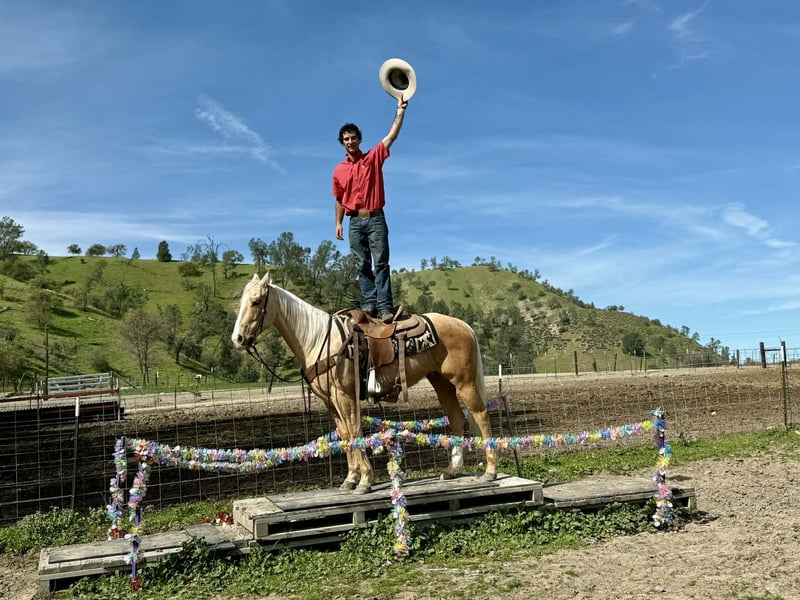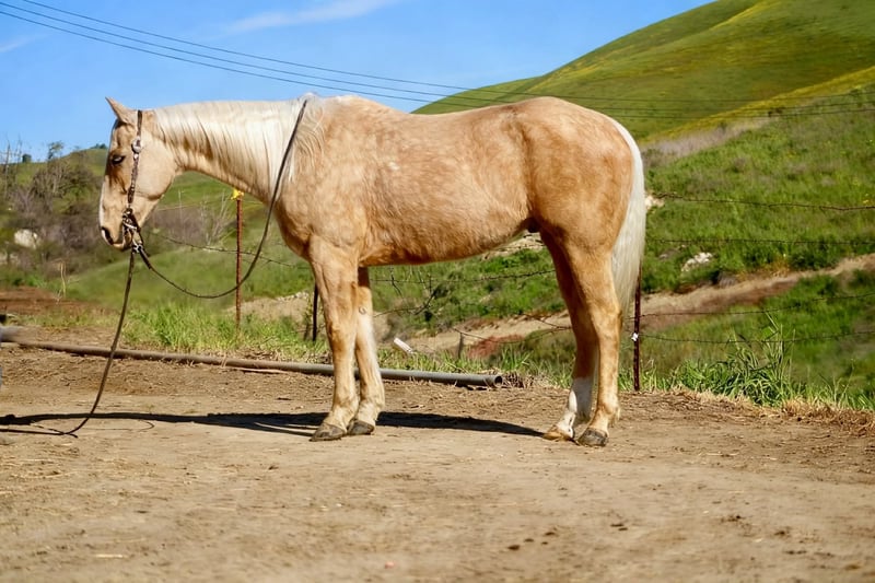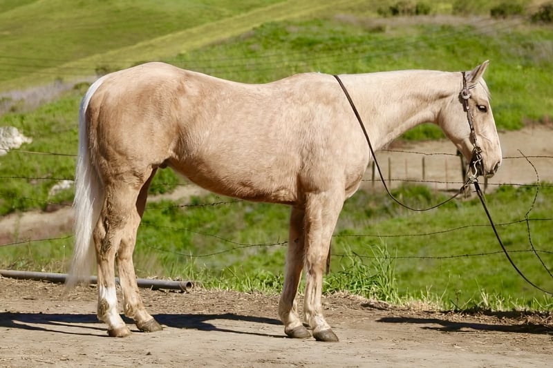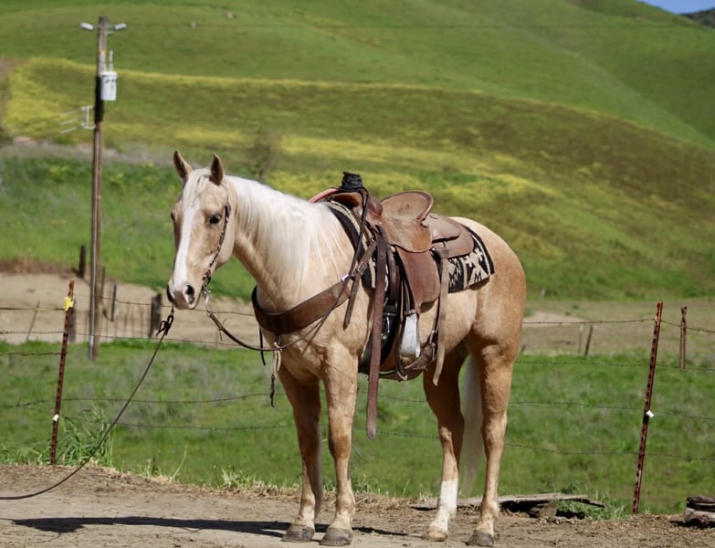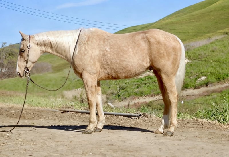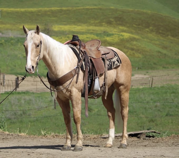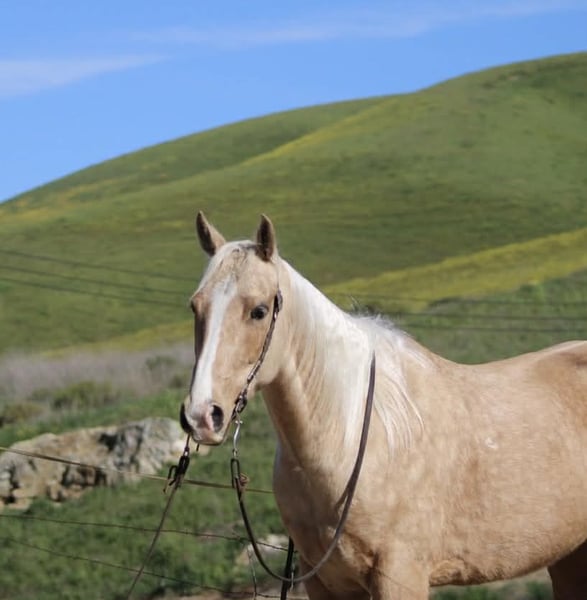 "AVAILABLE ON ONLINE HORSE AUCTION AT www DOT PlatinumEquineAuction DOT com BIDDING OPEN NOW thru SUNDAY | MARCH 15TH! *Final price will be determined on auction site* CONSIGNOR CONTACT INFO: Longhorn Ranch 831-537-1915 LOCATION: Paicines, CA APEX Not Just Gold — Solid Gold 7-Year-Old • 14.3 Hand Palomino Gelding If reliability, versatility, and style are high on your list, Apex deserves your attention. Apex is a sharp-made palomino gelding with the kind of mind and foundation that make him an asset in any program. He is honest, capable, and rides with the confidence of a horse that has been there and done the work. On the ranch, Apex is proven. He has been used for branding, gathering, doctoring, sorting, and roping outside. He handles long days, new tasks, and changing environments with a steady, willing attitude. This is not a “pretend ranch horse” — he is the real thing. Started in the heeling, Apex is ready to season. He rates cattle naturally, stays level-headed, and stops with authority. He has the feel, timing, and foundation to confidently continue progressing in the roping pen. Outside, Apex shines. On the trail, he is confident, sure-footed, and dependable. He navigates rough terrain, crosses obstacles willingly, and handles wildlife without drama. Whether you ride solo or with a group, Apex remains steady and enjoyable. In the arena, Apex is soft, supple, and broke. He travels collected, lopes smooth circles, picks up both leads, transitions cleanly, and carries a comfortable, balanced way of going. He has a nice stop, a willing backup, and a responsive handle. Apex has been well exposed to flags, tarps, pool noodles, balls, and obstacles. Ride him down the road, haul him to new places, or put him to work — he stays consistent and dependable. Around the barn, Apex is exactly what you want. He tacks up quietly, stands patiently tied, hauls well, and maintains a calm, respectful demeanor in the stall. He is easy to handle, easy to ride, and easy to appreciate. Apex is the kind of gelding that fits where you need him: Ranch-proven Trail-solid Started in the heeling Soft and broke in the arena Obstacle-experienced Gentle and good-minded Located in Paicines, California Dina Longhorn Ranch 831-537-1915 Shipping available anywhere!