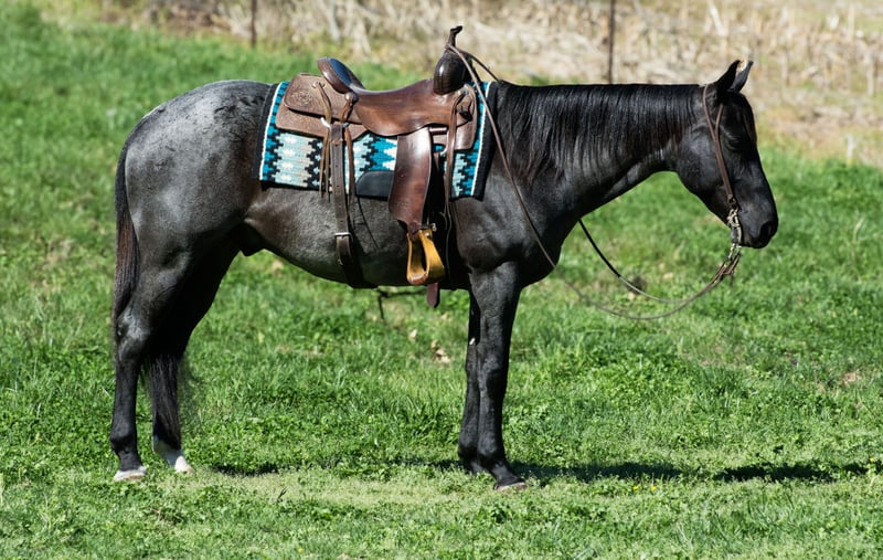 Cobalt, potro de 7 años, 15 manos, caballo de raza Quarter Horse, color roan azul, castrado