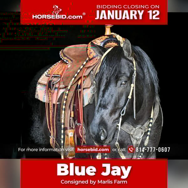 ♦️𝐍𝐄𝐖 𝐘𝐄𝐀𝐑'𝐒 𝑬𝒙𝒕𝒓𝒂𝒗𝒂𝒈𝒂𝒏𝒛𝒂♦️ Happening now thru MONDAY | JANUARY 12th - Available EXCLUSIVELY on HorseBid's website! For more details and to register visit: www.Horsebid.com CONSIGNOR CONTACT: Marlis Farm 814-777-0607 LOCATION: Rebersburg, PA BREED: Quarter horse REGISTERED: Yes REGISTERED NAME: BlueJs Easy Streak COLOR: Blue roan HEIGHT: 15 AGE: 7 GENDER: Gelding BlueJs Easy Streak AKA Blue Jay is a 7 yr old registered blue roan AQHA gelding that stands the perfect height of 15 hands. Not only is he pretty and good size, he is also gentle and well broke to ride, he neckreins, sidepasses and has a good stop. Blue Jay rides english and western. In the arena he picks up both his leads and has a smooth walk, trot and canter and he takes a jump. Blue Jay is a seasoned trail horse and will go over logs, through water and wherever you point him. We have taken Blue Jay downtown to run errands and he doesnt mind all the commotion and traffic, he rides the same everyday you get him out. Blue Jay is one of the top picks to go on a trail ride because he takes care of his rider no matter the situation. He does well inside and turned out in a mixed herd. He stands to be tacked, mounted, bathed and for the farrier. Blue Jay loads and unloads like a champ. He sells safe and sound and ready to move into his forever home. For more info or to come meet him call Mark 814 777 0607 (call only) We can help arrange shipping anywhere!