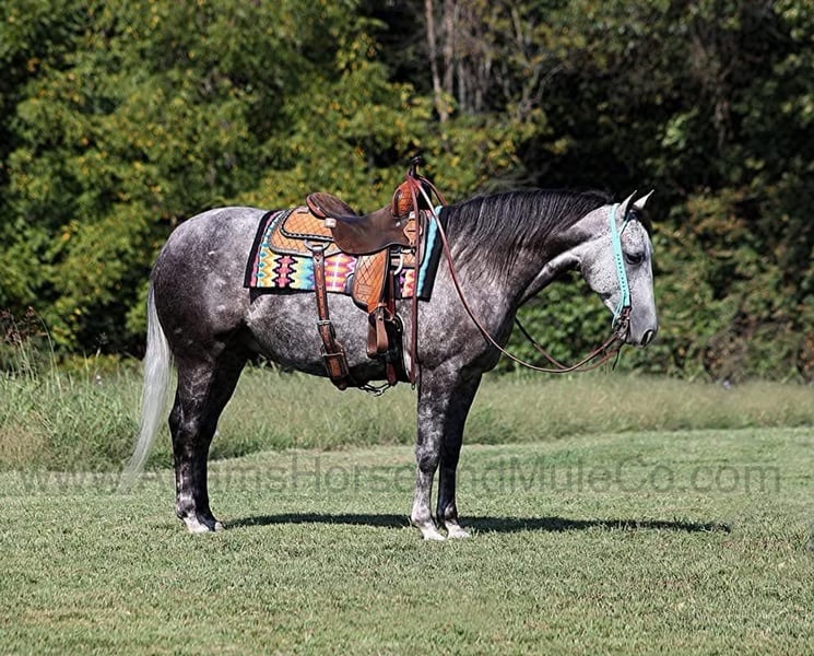 Mercedes is consigned to the Cowgirls Cadillacs sale in Wickenburg, AZ on February 21-22, 2025. Make plans to attend, you can bid in person or bid online. You can preview any horse in Mt. Vernon, KY before they head to Wickenburg, AZ or preview them when they arrive at the sale. Shipping can be arranged to any state or Canada. You can get more info about the sale at www.CowgirlCadillacs.com THESE Horses ARE NOT AVALAIBLE FOR PRIVATE PURCHASE Get your clipboard out and sharpen your pencil, ALL of those boxes are gonna get checked when you see Peppy Cat Dulce aka Mercedes… standing 15H tall and just about as wide, Mercedes is a 2019 model Reg AQHA, gelding with dapples from head to toe! Not only does he check that box in the looks department, take a look at his pedigree as he is a grandson of High Brow Cat with his dam going back to Colonel Freckles. Mercedes is bred to ride and bred to be a cow horse! He has had reining training and has worked the flag. He has been used out on the ranch for pasture roping and doctoring. Mercedes has team sorted and has been roped on out of the box. He lopes slow and easy in nice circles, spins both ways, slide stops… he has the moves to go along with the good looks! If the ranch work is done and you just want to go for a relaxing trail ride… steep slopes, rocky terrain, creeks, logs, ditches… he crosses it all with ease and is never in a hurry! If you have a free Saturday and want to go show him, he will excel in the Ranch Classes as well! Mercedes is the horse that can do any job, ride anywhere, the whole family can ride him and the whole family will love! Looks, Pedigree, Training, Experience, Versatility, Safe… he truly checks ALL the boxes!!! Call 606-308-2461 for more info.
