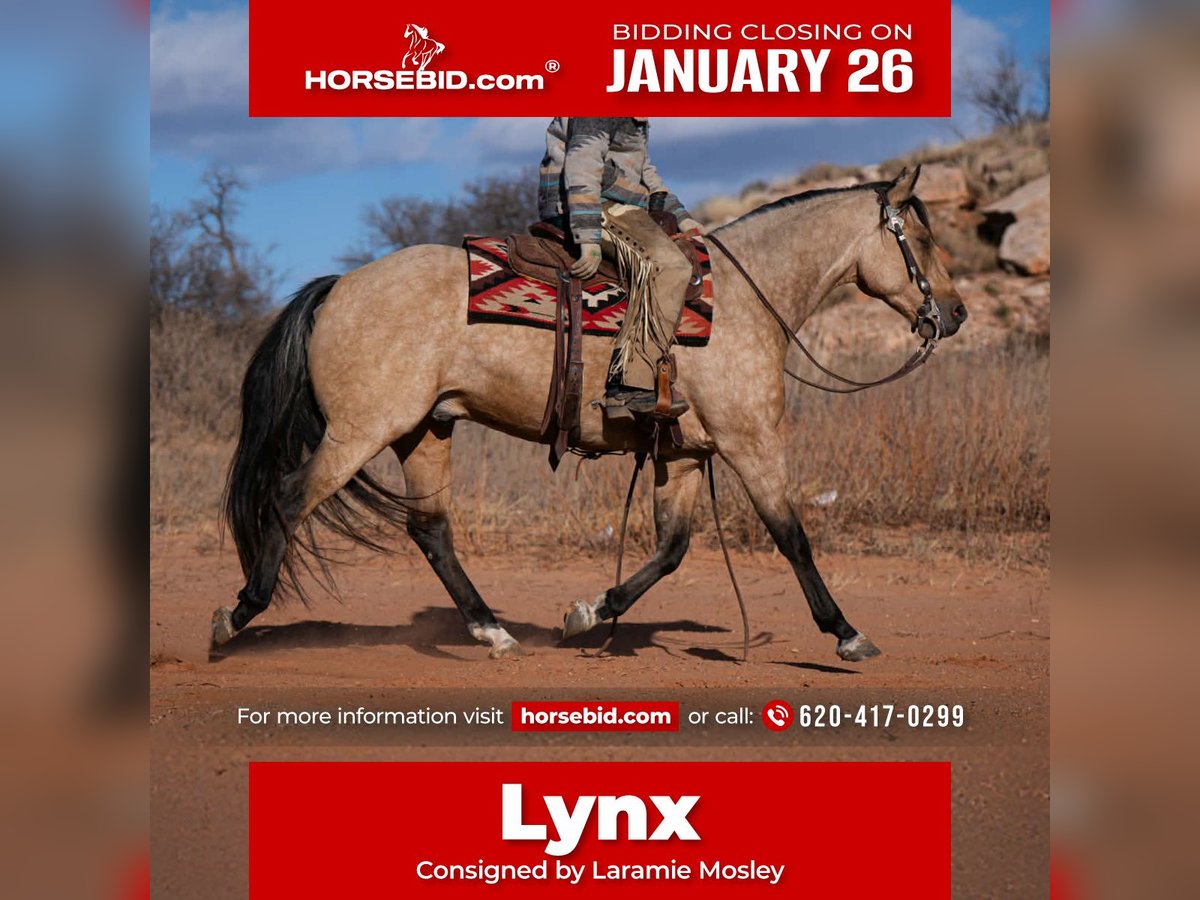 𝐉𝐀𝐍𝐔𝐀𝐑𝐘 ⭐️𝑨𝒍𝒍 𝑺𝒕𝒂𝒓 𝑳𝒊𝒏𝒆𝒖𝒑⭐️ Happening now thru MONDAY | JANUARY 26th - Available EXCLUSIVELY on HorseBid's website! For more details and to register visit: www.Horsebid.com CONSIGNOR CONTACT: Laramie Mosley 620-417-0299 LOCATION: Canyon, TX BREED: Quarter REGISTERED: No COLOR: Buckskin HEIGHT: 15.1 AGE: 7 GENDER: Geldingv