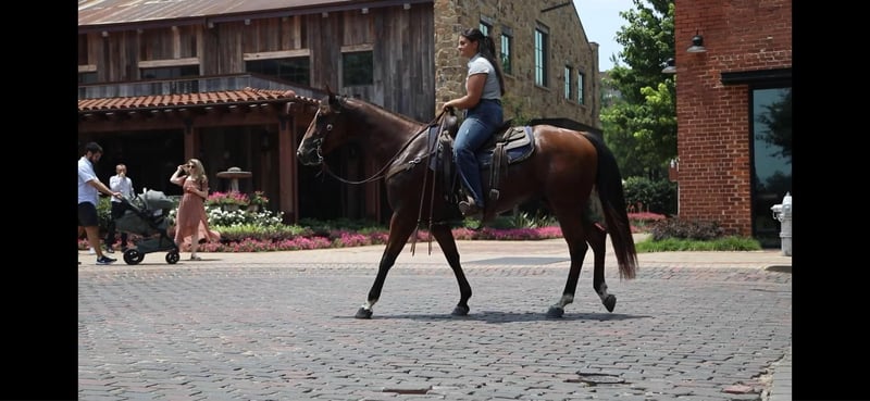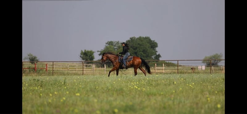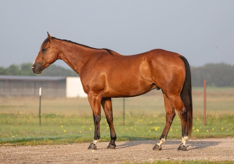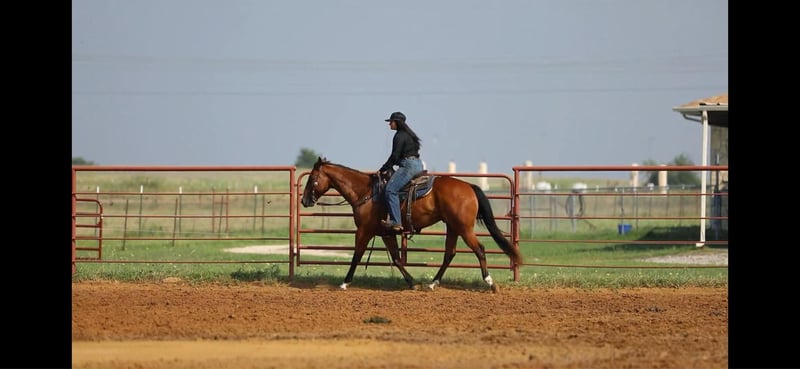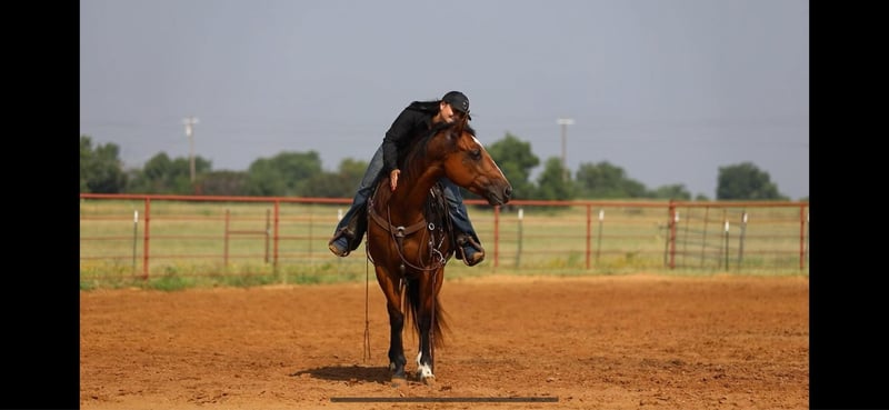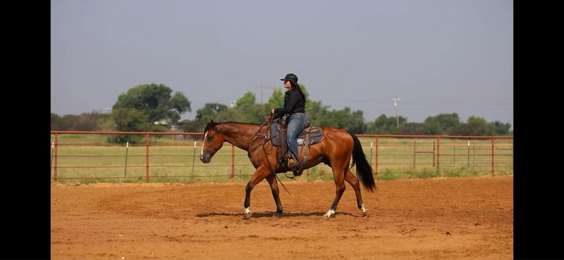 ONLINE AUCTION Place your bids at www.PlatinumEquineAuction.com Starting Bid $3500 Auction ends June 16th, 2024 Need a new saddle? Check out White Rock Saddles on our website or Facebook! FS Wars Wilywood aka “Ritz” is a registered AQHA 2019 Bay gelding, standing at 15.1H. Ritz acquired his name from… you guessed it! The household favorite Ritz cracker! This guy is so simple and easy he is EVERYONES favorite. Ritz will reel you in with his goofy gelding personality and blow you away with how calm, cool and collected he stays in every situation both on the ground and under saddle. Ritz walk, trot, lopes on a loose rein. He will guide around nicely with one hand or two in any gait. Ritz listens well to leg pressure and is soft in your hands.This gelding will make an excellent mount for any type of rider, whether you’re a beginner or an advanced rider you’ll have tons of fun on him! He would make the perfect trail mount or can go on to be a performance prospect with tons of other options for him in between. Ritz has been a pleasure for me to ride and is always my first go to horse if I’ve had a rough day or I just feel like I need a break and need an easy ride to take the stress of a long day away. He is a very consistent horse and does well with time off or is happy to work for a couple hours everyday. For only being 5 years old this gelding acts like a seasoned veteran. Take him out on a trail by yourself or with other horses and he won’t complain even the slightest! He has zero vices that I’ve come across. This gelding has an excellent puppy dog personality and will happily follow you around all day if you wanted him to! Ritz also leads, loads, and ties like a gentleman without any silly business. He’ll stand nicely to be groomed, saddled, and bathed. Ritz has been recently shod and was excellent for the farrier, and has also been seen recently by our vet, chiropractor, and dentist so he’s in tip top shape to go to work! He gets along well with other horses both in the pasture and the arena. He’s an excellent, GENTLE young horse with his whole life and career ahead of him. I know this guy will be an absolute favorite in someone’s barn, just as he is in mine. Please call Sydney with SRS Training and Sales for more information and questions you may have at 518-935-8282. Ritz is located in Granbury, TX. ONLINE AUCTION Place your bids at www.PlatinumEquineAuction.com Starting Bid $3500 Auction ends June 16th, 2024 Need a new saddle? Check out White Rock Saddles on our website or Facebook!