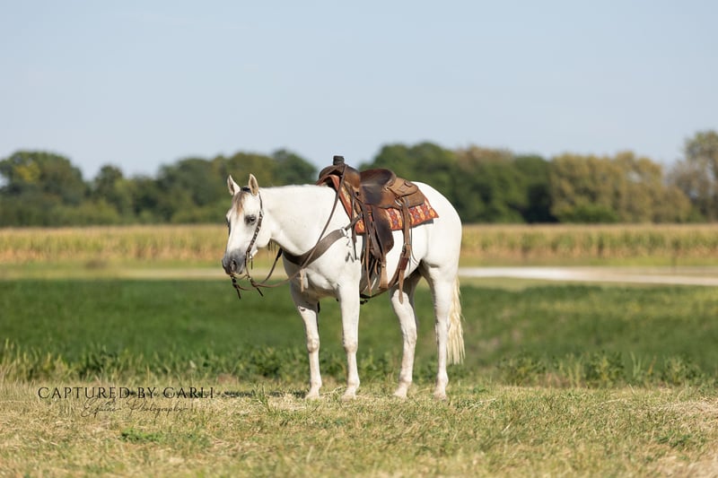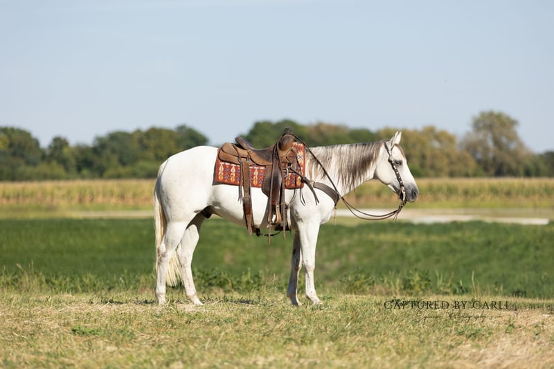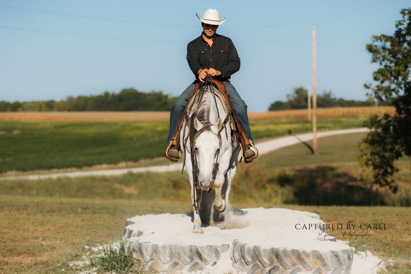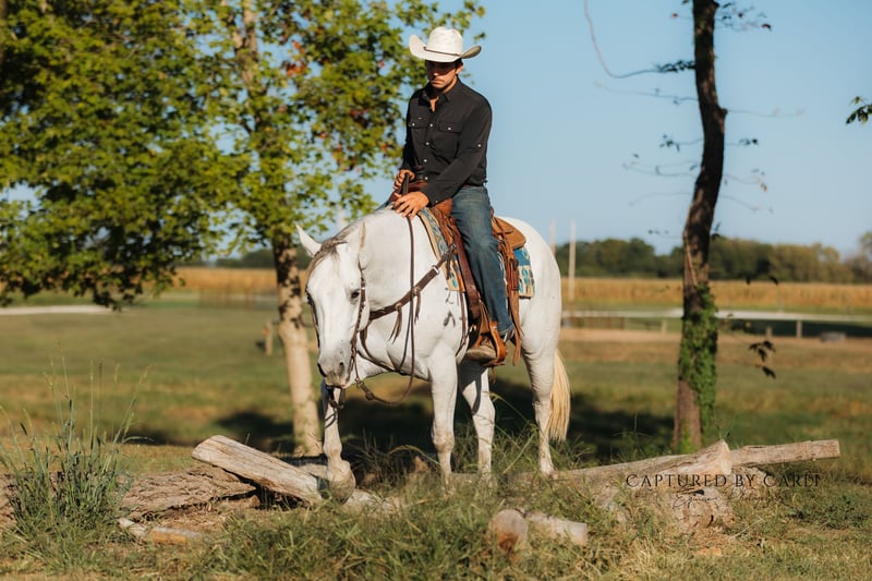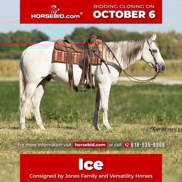 🍂 𝓐𝓾𝓽𝓾𝓶𝓷 𝑨𝑳𝑳 𝑺𝑻𝑨𝑹 𝑳𝑰𝑵𝑬𝑼𝑷 🍂 Happening now thru MONDAY | OCTOBER 6th - Available EXCLUSIVELY on HorseBid's website! For more details and to register visit: www.Horsebid.com CONSIGNOR CONTACT: Jones Family and Versatility Horses 618-535-9966 LOCATION: Lewistown, IL BREED: Quarter Horse REGISTERED: Yes REGISTERED NAME: Cowboys Gin A927 COLOR: Gray HEIGHT: 15.1 AGE: 6 GENDER: Gelding Ice is a gorgeous 15.1 hand gelding that truly checks all the boxes—seasoned, dependable, and consistent. He carries an excellent pedigree going back to greats like Tanquery Gin, Boonlight Dancer, and others, and he’s the kind of horse that blends proven genetics with real-world experience. Raised and used on a working ranch, Ice got the kind of intentional miles that shaped him into the broke, reliable gelding he is today. From doctoring cattle to sorting and gathering pastures, he’s done every job and done it well. Since leaving the ranch, his resume has only grown—he’s competed in ranch rodeos, been to the chuck wagon races, and trail ridden extensively at Eminence, MO, and many other places. He hauls like a pro, settles in anywhere, and is always calm, cool, and ready for an adventure. Ice has been ridden by all levels of riders and is especially kind to beginners. His easy, consistent handle not only keeps his rider safe but also helps them look good and learn at the same time. He’s soft and supple, rides on a draped rein or collected, has cadenced, smooth gaits, correct transitions, and a nice turnaround. On the ground, Ice is just as solid—easy to catch, bathe, shoe, and handle. He’s content in a stall or turned out with others, making him simple to keep in any program. Whether you’re looking for a family horse, rope horse, trail partner, or ranch versatility mount, Ice is the kind of gelding that fits the bill. He’s the type a horseman can truly appreciate, yet one a beginner can safely learn from. A gentleman through and through, he’s a pleasure to own and be around. Please reach out with any questions—we look forward to finding the perfect home for this outstanding gelding!