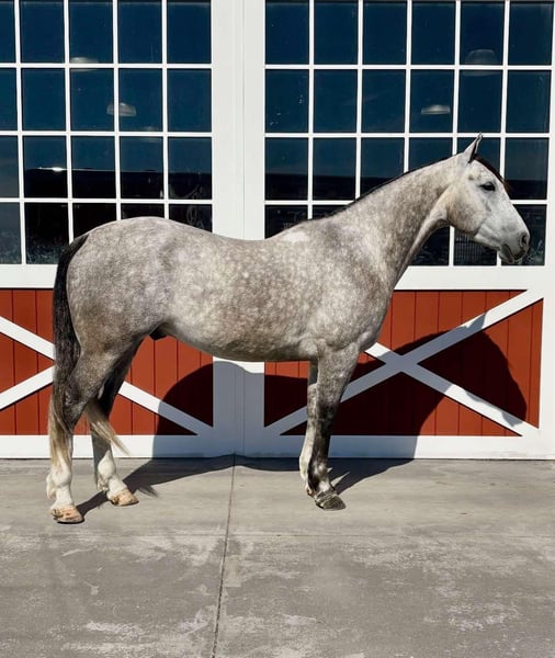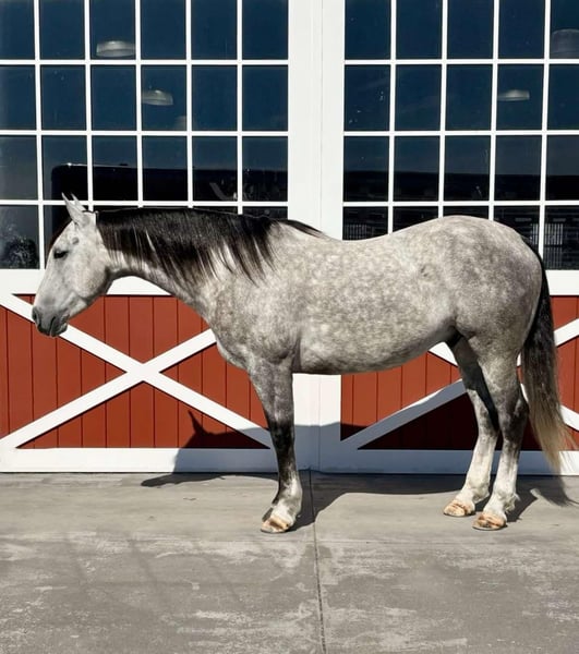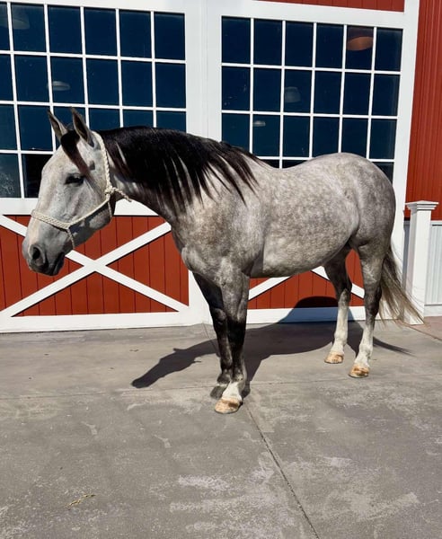 ONLINE AUCTION Place your bids at www.PlatinumEquineAuction.com Starting Bid $3500 Auction ends March 23rd, 2025 Need a new saddle? Check out White Rock Saddles on our website or Facebook! Diego 6 year old dapple grey grade quarter horse gelding that stands 15.1 hands tall and is very stout built. Diego has great ground manners and is easy to handle in the barn and out in the field, good for farrier and stands for vet. He has a true one hand neck rein will turn on his haunches both ways and side pass, nice stop – fluid back up and works off your leg and seat. Diego has been in the feed lots and down the trails and is a great using horse all around. Diego has done some pasture roping and doctoring on cows, he will make someone a nice sorting type as he can push, hold and track cows. He would also fall nicely into the ranch classes as he has all the maneuvers down and rides with the natural head carriage they seek or just have yourself one heck of a nice broke and pretty trail horse. He is clean legged with good feet and no previous medical history, no maintenance and sells sound. All prospective buyers are welcome to have vet checks done at their expense, if you need help I arranging shipping we are happy to share our list of haulers with you. Located in Everett, PA. Contact Benny Hall 814-979-2046 with any questions. ONLINE AUCTION Place your bids at www.PlatinumEquineAuction.com Starting Bid $3500 Auction ends March 23rd, 2025 Need a new saddle? Check out White Rock Saddles on our website or Facebook!
