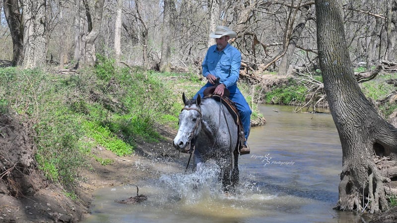 🍂 𝓐𝓾𝓽𝓾𝓶𝓷 𝑨𝑳𝑳 𝑺𝑻𝑨𝑹 𝑳𝑰𝑵𝑬𝑼𝑷 🍂 Happening now thru MONDAY | OCTOBER 6th - Available EXCLUSIVELY on HorseBid's website! For more details and to register visit: www.Horsebid.com CONSIGNOR CONTACT: Andrew Yoder 417-432-1087 LOCATION: Harwood, MO BREED: Quarter Horse REGISTERED: Yes REGISTERED NAME: Lunas Charmer Man COLOR: Gray HEIGHT: 15.2 AGE: 5 GENDER: Gelding Jake is an outstanding gelding that is an absolute pleasure to be around. He is perfect for the entire family. He has a nice enough handle to do any job with, as well as take to the show pen or arena. Jake is honest! Even with time off, he will saddle up and ride off without trouble. He is very forgiving when being ridden by a child or inexperienced rider. Jake is traffic safe and rides out great alone or with the group. He is an expert on the trails, crossing creeks, logs, and other obstacles with ease. Jake has a nice extended trot, picks up his leads on cue, lopes correct circles, has a nice stop, rides bridleless, works well in an arena or out in the wide open. He could easily excel in ranch show classes or make a solid ranch horse that the entire family can use. He is comfortable around other small/large livestock, pets, and small children. Jake is a very quiet, laid-back, safe gelding that is a gentleman for everyone. He does well stalled or turned out with other horses. He is easy to catch when turned out. Jake is easy to shoe and has good feet. If you're looking for an incredibly nice gelding, that's as honest as the day is long, look no further than Jake! If you have any additional questions, or would like to meet Jake prior to the auction ending, please do not hesitate to call Andrew at 417-432-1087.