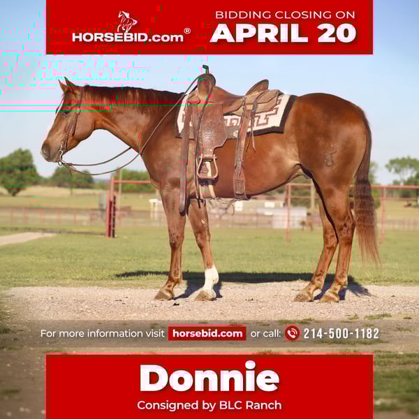 ⚜️𝐭𝐡𝐞 𝓔𝓵𝓲𝓽𝓮 𝐒𝐩𝐫𝐢𝐧𝐠 𝐂𝐥𝐚𝐬𝐬𝐢𝐜⚜️ Happening now thru MONDAY | APRIL 20th - Available EXCLUSIVELY on HorseBid's website! For more details and to register visit: www.Horsebid.com CONSIGNOR CONTACT: BLC Ranch Brett Clark 214-500-1182 LOCATION: Grand Saline, TX BREED: Quarter REGISTERED: Yes REGISTERED NAME: Pepto Triple Bar COLOR: Sorrel HEIGHT: 15.3 AGE: 7 GENDER: Gelding Check out Donnie!! He is a big stand up 15.3 hand gelding. Don started is life on the famous Bartlett ranch and he carries their brands. The Bartlett is known for great ranch and performance horses. Don is sired by a good son to the great PEPTOBOONSMAL. Don is the perfect age and has his whole life ahead of him. He has been used for all aspects of ranch work. We’ve gathered and sorted a lot of cattle on him. Don never shys from a days of hard work. His disposition makes him who he is, such an easy going guy. Always the first one to be caught in the pasture and doesn’t pick on anybody. Time off doesn’t faze him. When you decide you’re ready to ride fetch your saddle, reins, and climb aboard. He stands like a gentleman to be washed or trimmed. Don is definitely an old soul in a young body. Overall he is very easy to ride with a simple one hand neck rein and cues off command. Lopes and takes his leads with ease. This is a very user friendly gelding that stays the same year around. Please call 214-500-1182 we’d love to talk. Sound and sane!!