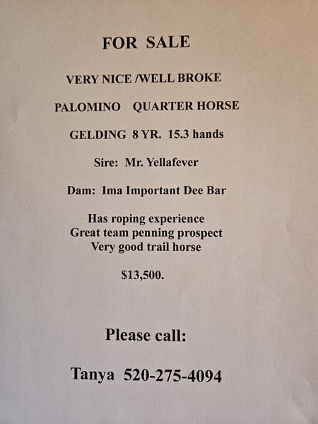 Very nice/well broke Palomino Quarter horse Gelding 8 yr. old 15.3 hands Has roping experience Great team penning prospect Very steady trail horse