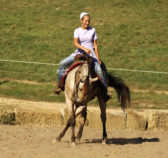 Loyal 2019 Quarter Horse cross stands 15.1 hands tall | Buckskin