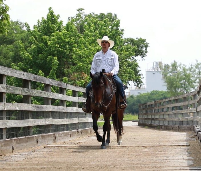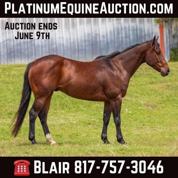 ONLINE AUCTION Place your bids at www.PlatinumEquineAuction.com Starting Bid $3500 Auction ends June 9th, 2024 Need a new saddle? Check out White Rock Saddles on our website or Facebook! Bar Reasybrownlegend aka “Easy” is a 15.1H, 2019’ AQHA brown gelding. Easy carries his name for a reason, if you’re looking for laid back, TOTALLY chill and EASY, this is your guy. He was born calm, cool and collected. He’s been one that you can jump on and go and has the same relaxed attitude every ride. He’s extremely gentle and safe! He’d be the perfect calm, old lady/kid trail horse as he is now or someone could go on and make him a performance horse prospect. Easy takes to all new places and situations perfectly and acts like he’s already been around the world 100 times. He has an extremely quiet, stable personality and is definitely one everyone will get along with EASILY. He neck reins great, moves off leg, stops when you ask him to and is super comfy to ride! He quiet to load, lead, bath, tie, saddle and be around in general! Easy gets along with everyone and everything and has ZERO holes or vices we’ve been able to find. This is a really nice, young gelding that has his whole life ahead of him! There’s not too many 5 yr olds that we like to call completely beginner safe, but this guy sure is one of them! Don’t miss your chance to own an extremely quiet, push button, get on and go gelding! Easy is just that, simple EASY! Please call Blair with North Texas Horse Company for more info at 817-757-3046. We LOVE to talk about him! We are located in Weatherford, TX and can help arrange affordable shipping to anyone!! ONLINE AUCTION Place your bids at www.PlatinumEquineAuction.com Starting Bid $3500 Auction ends June 9th, 2024 Need a new saddle? Check out White Rock Saddles on our website or Facebook!