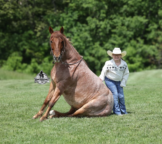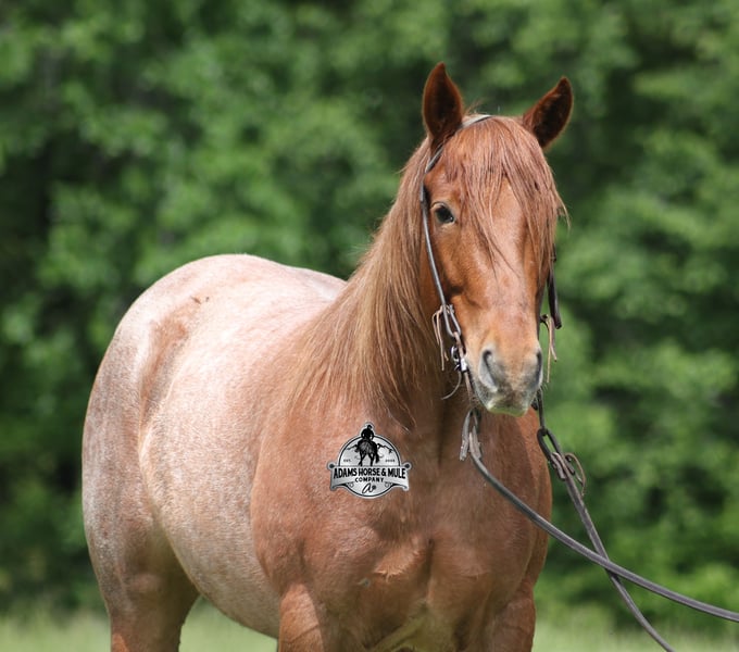 If your confidence levels are low and you have had nothing but bad luck with you other horses… just say Adios to those days because this guy is going to fix all of that! Adios is a beautiful red roan Gelding that is very stocky built, he is 6 years old and is standing right at 14.3hh! Adios has completed the natural horsemanship program and he is very friendly and loves attention!! He knows some tricks as well as he will lay down and set on command. Adios has done it all from being ridden by small children down the highways to being ridden around the ranch, checked cows, rode fences and cruised the trails. He is a laid back type of guy that will just plod along down the trails with no hesitation and not in a hurry. He has been on camping trips and has been ridden by all ages of riders from 6 to 86 that guy will be safe and easy to ride. When out on the ranch or going down the trails he will cross creeks, ditches, logs and navigate rough, rocky areas. He is safe in traffic safe whether that be trucks or cars. He walks on a loose rein, has a nice jog, his lope is slow and collected plus he lopes very nice circles on a loose/draped rein! He has been exposed to all kinds of wildlife such as deer or turkey. He is athletic and would be a great horse to put under English tack to go over the rails with. He pastures well with others and rides the same after time off. Adios is one that the whole family will love, he will be perfect for the guest to ride with a personality that will make him everyone’s best friend! Feel free to call Eric 606-308-2461 with any questions! Go to visit our website for more pics and a video www.AdamsHorseAndMuleCo.com AHAMC has been in the horse business and sold horses over the internet since 2005. We have a long track record of success with hundreds of happy customers. We work hard to match riders with the correct horses and specialize in beginner safe, family friendly horses that have been used and checked out by our family! We can set up transportation anywhere in the US and look forward to working with you.
