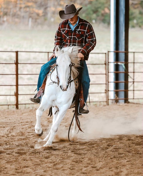 ONLINE AUCTION Place your bids at www.PlatinumEquineAuction.com Starting Bid $3500 Auction ends November 23rd, 2025 Need a new saddle? Check out White Rock Saddles on our website or Facebook Smarty is the kind of gelding everyone wishes they had in their barn. Big heart, big try, and a personality that shines. Standing at 14.1 hands, this 6-year-old grade Quarter Pony packs all the talent, cow sense, and athletic ability of a big horse into a handy, easy-to-ride size. He’s been rode outside extensively and has real-world experience pinning back cattle at the sale barn. Smarty has also breakawayed calves while pushing and shows a ton of natural cow sense — he’s cowy, willing, and always ready to go to work. Out on the trail, Smarty is steady and confident, taking every obstacle in stride. Whether it’s crossing water, dragging a log, or maneuvering through tight spots, he does it all with ease. This gelding has a smooth, collected short lope, a big stop, and a soft, easy neck rein. He’s gentle as they come — the first one to meet you at the gate and always eager for attention. Smarty is truly the kind that makes you look forward to saddling up every day — broke, honest, and full of heart. If you’re looking for a versatile, gentle, and well-rounded partner that can go from the ranch to the trail or even into the arena, Smarty is your guy. For more info contact Alexis with AM Equine 660-438-0306 Located in Cole Camp, MO. ONLINE AUCTION Place your bids at www.PlatinumEquineAuction.com Starting Bid $3500 Auction ends November 23rd, 2025 Need a new saddle? Check out White Rock Saddles on our website or Facebook