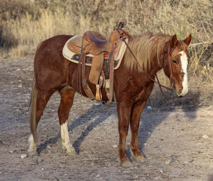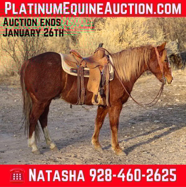 ONLINE AUCTION Place your bids at www.PlatinumEquineAuction.com Starting Bid $3500 Auction ends January 26th, 2025 Need a new saddle? Check out White Rock Saddles on our website or Facebook Clifford is a 7 year old grade gelding standing 14hh. Clifford was raised in the rough country of Arizona and has been ranched on all over the state. Clifford will go absolutely anywhere you point him, through the roughest rockiest terrain, steep slippery slopes, thick brush, flowing water. You name it and Clifford will bulldoze through it with ease, surefooted as can be! We’ve used Clifford for absolutely every single job on the ranch and he’s always handled it like a champ. If you’re looking for a great using horse, or an amazing trail horse, then look no further Clifford is your guy! Neck reins and has a very smooth trot and lope. Clifford with come a clean coggins and health! Transport can easily be arranged anywhere in the US!!! Located in Camp Verde, AZ. Contact D/C Equine Services Dallas 804-822-2233 Natasha 928-460-2625