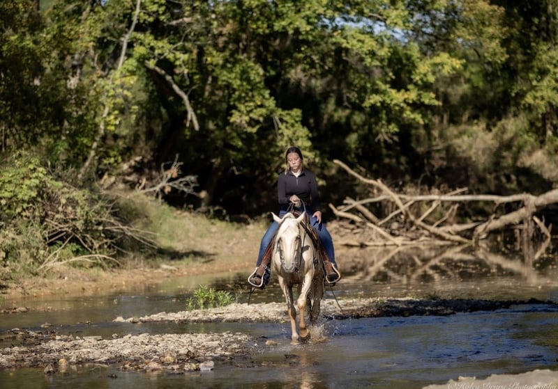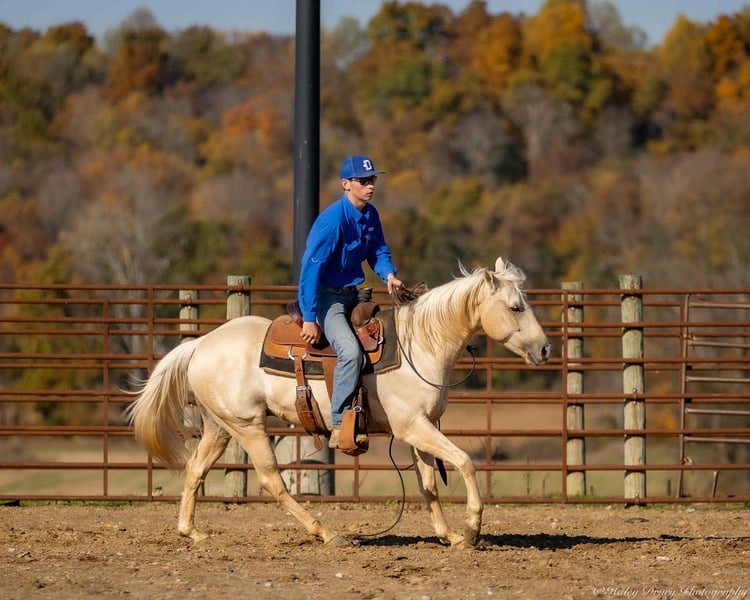 🎲𝓽𝓱𝓮 𝐑𝐈𝐃𝐄𝐑'𝐒 𝓒𝓱𝓸𝓲𝓬𝓮🎲 Happening now thru MONDAY | NOVEMBER 17th - Available EXCLUSIVELY on HorseBid's website! For more details and to register visit: www.Horsebid.com CONSIGNOR CONTACT: Jamie Thomason 270-772-1706 LOCATION: Auburn, KY BREED: Quarter Horse REGISTERED: No REGISTERED NAME: MILO COLOR: Palomino HEIGHT: 14 AGE: 7 GENDER: Gelding A horse that’s as fun as he is dependable! Milo is a 7 yr old, Palomino, Quarter Horse gelding, standing at a rider friendly 14 hands. Experienced on the trail, brave and enthusiastic over jumps! An excellent choice for an experienced kid or adult amateur seeking a potential cross country mount! Milo is my daughter’s first choice when it comes to weekend camping & trail riding trips with her friends. He has accompanied her frequently on rides at various national and state parks, a horse that I can always trust that he’ll get her there and back safely. He’s surefooted, crosses water, confidently navigates wooded paths and various terrain. Milo ties overnight on a tie line & rides alone or in a group. Milo is forward and responsive, but never hot or spooky. He travels both directions on the correct lead, transitions nicely, & is a comfortable ride. We’ve taken Milo over cross rails at home & natural obstacles on the trail. He is confident over both, has natural ability, and really enjoys the challenge! Milo is an asset here at home. He’s helped us gather cattle alongside working stock dogs, opens & closes gates, and provides entertainment for the kids. You’ll notice my lil riding partner, Adley, in Milo’s video. Adley is 6 and she is able to lead, tie, groom, and even load & unload Milo on her own. Adley rides Milo in the arena, across fields, and out on the trail. Milo is the same dependable, willing partner whether you ride every day or just every once in a while. If you’re searching for a horse who’s fun, versatile, and ready for adventure, Milo is the one! Milo sells current on all cares. If you would like to meet Milo or have any other questions prior to adding him to your family, feel free to reach out! We can assist in arranging shipping to anywhere! Contact Jamie @ 270-772-1706