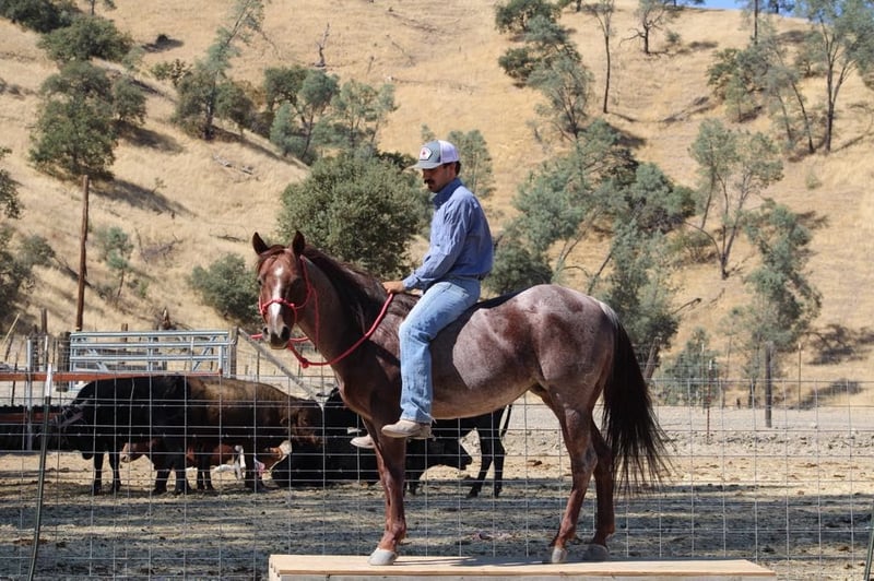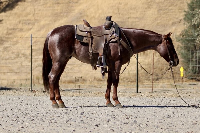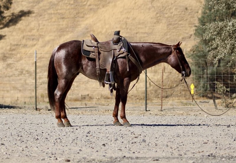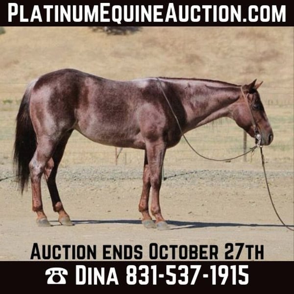 ONLINE AUCTION Place your bids at www.PlatinumEquineAuction.com Starting Bid $3500 Auction ends October 27th, 2024 Need a new saddle? Check out White Rock Saddles on our website or Facebook! Mini Cooper this stunning red roan gelding who truly embodies charm and grace at just 6 years old he acts like a seasoned veteran. Standing at just under 14 hands tall, this gentle soul is easy to mount. With a smooth sliding stop that feels like gliding on air and fancy turns that would impress even the most seasoned riders, he is very smooth in walk; trot and canter and transitions beautifully in all his gaits. He lopes nice easy correct circles. Mini Cooper is beautifully broke and ready for adventure. Mini cooper could easily do 4-H or play days with the kiddos or sorting or ranch versatility His friendly demeanor makes him an instant favorite in any family he’s not just reliable but downright lovable. Whether you’re herding cattle or leisurely gathering with friends, this boy thrives in various roles he’s been branding and heeling sleds and started on slow steers with ease! On trail rides, he’s your steadfast companion, having confidently navigated beaches and bustling streets without blinking an eye at cars or pedestrians. Obstacles like tarps,flags, teetering bridges or walking over tires he seen it all No problem for Mini Cooper he breezes through them like they’re nothing more than gentle whispers of wind. Loading up for travels? He hops right in without hesitation! You’ll find him standing patiently tied all day long like a true soldier while you prepare for your next outing together. With his remarkable versatility and character shining bright, it’s no wonder we consider him one of the coolest horses around a real gem waiting to become your best friend on four legs! Mimi Cooper is more on the slow side but will pick up the pace when’s asked he is one that likes to cruise along and enjoy his surroundings . He is great for the farrier and easy to tack up and groom he loves attention. He his good in stall or pasture atmosphere. He thrives on attention and loves being doted on he’s a special boy for sure. Please contact Longhorn Ranch Dina 831-537-1915 Located in Paicines, CA. ONLINE AUCTION Place your bids at www.PlatinumEquineAuction.com Starting Bid $3500 Auction ends October 27th, 2024 Need a new saddle? Check out White Rock Saddles on our website or Facebook!