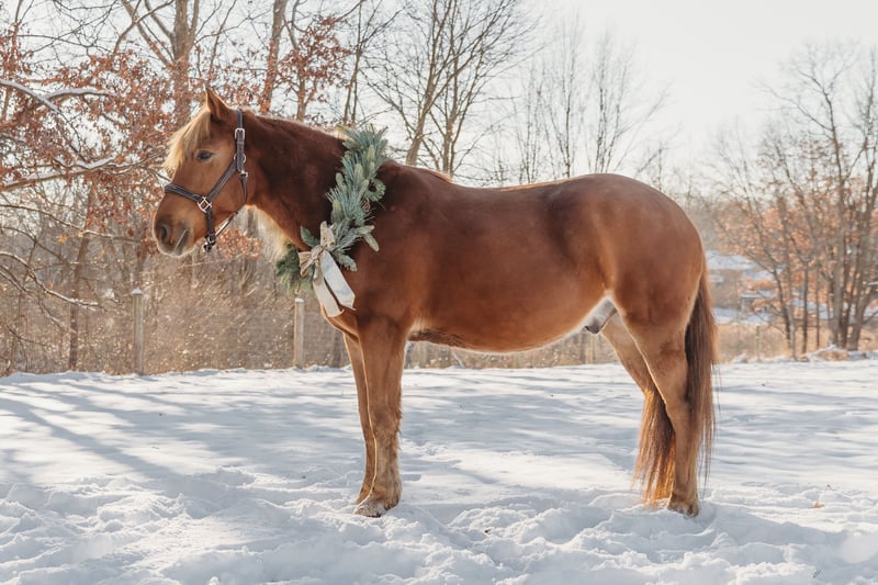 🎄𝐓𝐇𝐄 𝑯𝒐𝒍𝒊𝒅𝒂𝒚 𝐂𝐋𝐀𝐒𝐒𝐈𝐂🎄 Happening now thru MONDAY | DECEMBER 15th - Available EXCLUSIVELY on HorseBid's website! For more details and to register visit: www.Horsebid.com CONSIGNOR CONTACT: Blackstone stables 248-390-6831 LOCATION: Howell MI BREED: Quarter Horse Haflinger Cross REGISTERED: No COLOR: Chestnut HEIGHT: 14.2 AGE: 7 GENDER: Gelding Mr. Dependable—better known as Flash around here—is a 7-year-old, 14.2hh Quarter Horse/Haflinger cross gelding with the most stunning, double-thick flaxen mane you’ve ever seen. Flash is truly the kindest soul around. He’ll let anyone catch him anywhere, anytime, and he stands tied quietly for everything from grooming to mounting. Flash has miles and miles of trail experience under his belt. He’s been through woods and open fields, seen wildlife, crossed lakes and streams, gone over bridges, and handled every kind of terrain with confidence. He’s the type you can safely load up and take on any adventure. He enjoys taking his time and soaking in the scenery, but he’ll move out willingly when asked. He has been exposed to pool noodles, tarps, and all sorts of desensitization tools—he’s simply not one to bat an eye at anything. In the arena, Flash is just as dependable. He walks, trots, canters, and jumps around with even the most beginner riders. He’ll pack a tiny kid or help an adult work on refining their skills. Flash will jump full courses both indoors and out, holding a lovely, steady canter throughout. He could be the perfect horse for a little girl learning to jump or a more advanced rider looking to move up. Flash is the rare combination of safe, sturdy, willing, and beautifully trained. Whether you’re looking for a trustworthy babysitter, a fun partner on the trails, or a confidence-building mount in the arena, Flash is the kind of gelding that makes every ride feel easy. Horses like him are few and far between—he is truly the whole package.