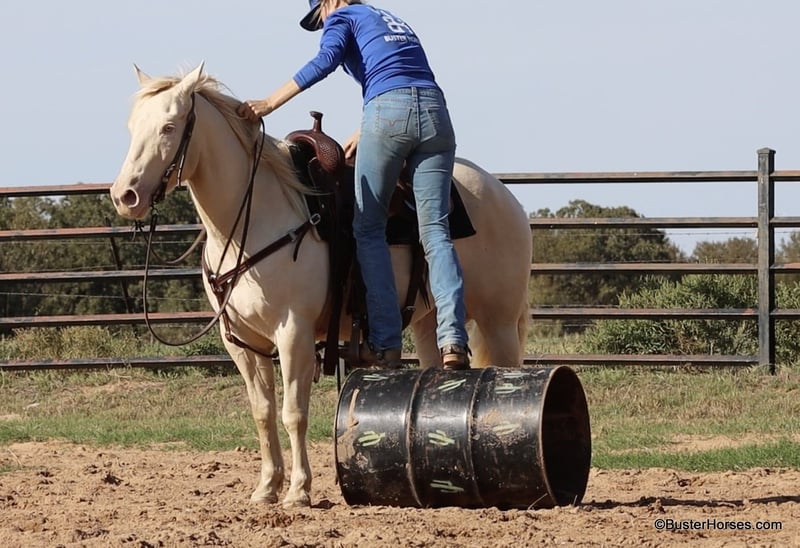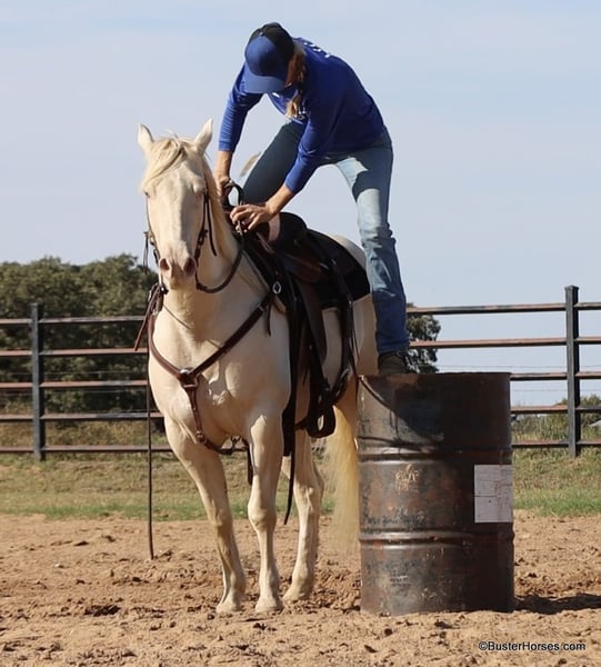 ONLINE AUCTION Place your bids at www.PlatinumEquineAuction.com Starting Bid $3500 Auction ends December 15th, 2024 Need a new saddle? Check out White Rock Saddles on our website or Facebook! “Maximus” – 14.2H, 6 year old white Cremello quarter horse gelding Maximus is a super stout made gorgeous gelding, just coming into his prime years. If you have been looking for something super laid back and gentle – and are not wanting to settle for an older horse, then definitely check out this guy and watch his whole video! Maximus got his miles in his working clothes; he was mostly used outside on a ranch, and used in the sorting pens and in the feedlots. He is massive made, super stout and wide – the model on him in the video is literally 6’2 and she is ALL legs! He has great bone and is made to last. Maximus has a good stop, a nice easy handle, he trots and lopes around super balanced and relaxed. He has a simple one-handed handle and will ride anywhere pitched away on a nice long loose rein at any gait. He is a pretty mover, naturally very balanced and smooth, he is a very comfy ride at all gaits. Maximus was raised out in big open country – but he absolutely loves going to town. He is super relaxed going down the side of the highway, and down the busy streets in town. He loves meeting people and seeing all the things that there are to see. He rides out great alone, and has probably been more miles alone than he has in groups. He is easy to get along with and lives outside well in a group of horses, or he is happy kept inside in the stall barn. He is easy to catch and always comes up to you, he loves being around people and he loves going to work. He stands tied quietly, is easy to saddle and bridle and he stands dead still for you to step on and off. He loves a bath and really enjoys playing in the water. He is great at crossing creeks and loves to go for a swim in the river or pond. He hops right on the trailer easily, and stands quietly on the trailer as well as tied off on the side of the trailer. He has no vices or bad habits and is a fresh clean slate for someone to finish out as a rope horse, if you want to go that direction with him. Please check back on our website for additional videos to be posted of him over the next two weeks! Please call anytime for more information at 214-605-7174 Maximus is located in Weatherford, TX – one hour from Dallas / Fort Worth International Airport. He is an easy day trip or fun overnight trip to come try out, from anywhere! We are experienced knowledgeable sellers and we can help with quickly arranging affordable shipping to any buyer’s location – we have experience shipping horses worldwide – including regularly to Hawaii, Canada, Mexico, Europe, and South Africa. Go to our Facebook page Buster Ranch and check our website for buyer reviews, for more videos, additional info, etc: https://busterhorses.com/Maximus ONLINE AUCTION Place your bids at www.PlatinumEquineAuction.com Starting Bid $3500 Auction ends December 15th, 2024 Need a new saddle? Check out White Rock Saddles on our website or Facebook!