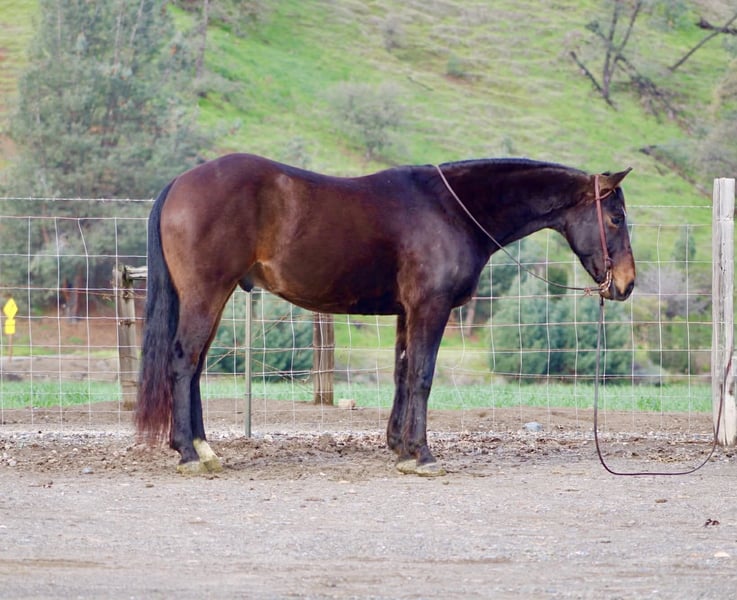 "AVAILABLE ON ONLINE HORSE AUCTION AT www DOT PlatinumEquineAuction DOT com BIDDING OPEN NOW thru SUNDAY | MARCH 8TH! *Final price will be determined on auction site* CONSIGNOR CONTACT INFO: Longhorn Ranch 831-537-1915 LOCATION: Paicines, CA Lucky 8-Year-Old Bay Gelding • 14.3 Hands Lucky is a classy, well-made bay gelding with a kind eye, a willing attitude, and the type of versatility that makes him an incredibly enjoyable horse to own. Standing 14.3 hands and 8 years old, he offers that ideal combination of handiness, athletic ability, and substance — a size that fits just about anyone while still feeling capable and balanced. Lucky has a solid, correct foundation that allows him to transition smoothly into a variety of programs. He has been started on the lead steer and shows natural cow sense, quick feet, and an honest interest in cattle. He stays engaged in his work, reads situations well, and carries himself with a steady, willing mindset that makes every ride productive and enjoyable. Lucky is not quite finished in any one discipline, and that is truly one of his greatest strengths. Rather than being limited to a single job, he has the ability, training, and attitude to confidently step into a variety of different roles. Whether your goals include roping, sorting, ranch work, trail riding, or simply having a handy, athletic partner, Lucky offers the flexibility to go in the direction that best suits his next rider. In the arena, Lucky is soft, smooth, and correct. He travels willingly through all his gaits with easy, uncomplicated transitions. He moves nicely off your leg, stays balanced, and maintains a relaxed, cooperative feel. He’s the kind of horse that rides honest — no tension, no resistance, just a willing partner that stays tuned in and ready. His willingness is one of his most appealing qualities. Lucky approaches his work with a quiet, agreeable attitude and a genuine try. He accepts new tasks without fuss, handles correction without drama, and consistently gives his rider a confident, dependable feel. He is the type of gelding that makes you look forward to riding. Lucky has been exposed to obstacles including bridges, tires, and flags. He handles new challenges with curiosity and confidence rather than worry. Out on the trail, he is steady and sure-footed, navigating rocks, water, and trees with ease. He walks willingly into the water, stays relaxed in new environments, and remains respectful wherever he goes. Suitable for a variety of riders, Lucky is forgiving, willing, and kind-minded. He has the disposition to be enjoyed by someone wanting a fun, uncomplicated ride while still offering the athleticism and talent for a rider with specific goals. Beyond his rideability, Lucky is simply a pleasure to have around. He is easy to catch, easy to saddle, and easy to handle. He ties, hauls well, currently barefoot and handles time off without becoming fresh or unpredictable. He maintains the same steady, willing attitude that makes him such a reliable and enjoyable partner. Lucky represents a rare opportunity to own a well-started, talented gelding with the mind and ability to go in multiple directions. Horses like him offer both immediate enjoyment and exciting future possibilities. Located in Paicines, California Longhorn Ranch Dina 831-537-1915 Nationwide Shipping Available We are happy to assist in arranging safe, reliable transportation anywhere in the United States.