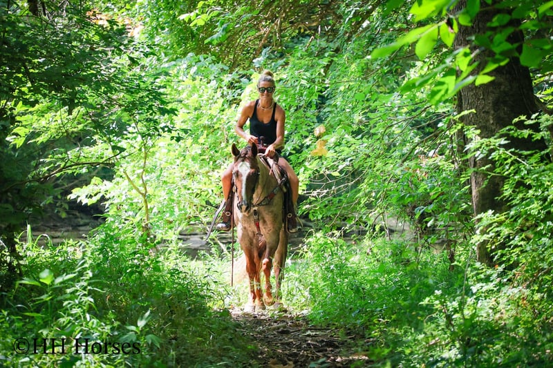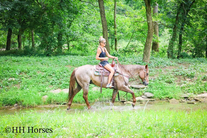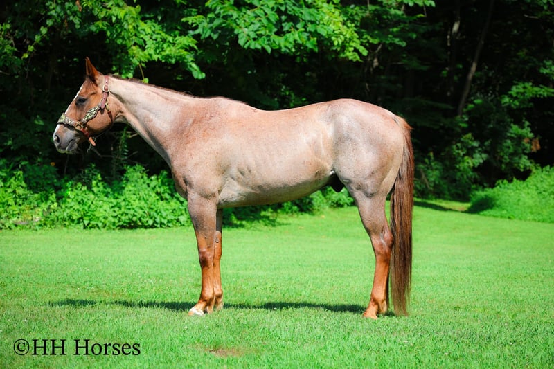 ONLINE AUCTION Place your bids at www.PlatinumEquineAuction.com Starting Bid $3500 Auction ends July 27th 2025 Need a new saddle? Check out White Rock Saddles on our website or Facebook This is “CARROT CAKE”, a top notch broke, gentle, well mannered, versatile RED ROAN QUARTER HORSE GELDING that the whole family can ride and that you can take out and do the ranch work with. He is 14.3 hands tall and 7 years old. This gelding is the kind of horse that makes you LOVE TO RIDE. He is obedient, calm, cool, collected, and civilized. He lopes the NICEST circles without the confines of an arena fence. He has a smooth, low headed, and relaxed jog. He is a seasoned ranch mount that has been ridden by older people, younger children, and novice riders. He can also step it up notch and really ride around when asked to do so. He will slide stop, back up, move off of leg cues. He is the nicest horse to get alone with, he aims to please, and he likes attention. He will cross water, trail ride anywhere you want to go, and he has been on the main roads. He is attractive, super smart, well broke, and will one hand neck rein around nicely. He’s my favorite horse that I have had in a long time. For more info, to schedule a time to come see him or to make a Buy It now Offer, call Erin with HH Horses 304-238-4155 Located in Flemingsburg, KY. ONLINE AUCTION Place your bids at www.PlatinumEquineAuction.com Starting Bid $3500 Auction ends July 27th 2025 Need a new saddle? Check out White Rock Saddles on our website or Facebook