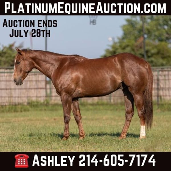 ONLINE AUCTION Place your bids at www.PlatinumEquineAuction.com Starting Bid $3500 Auction ends July 28th, 2024 Need a new saddle? Check out White Rock Saddles on our website or Facebook! “Nash” – 15H, 6 year old sorrel roan grade quarter horse gelding. Nash is a solid using horse. We have loaded him out several times to check fences and day work on when someone was short a horse, and he has been used many many horses in the turnback pen. He is pretty marked and has that classic using quart horse look. He rides outside just as well alone as he does with others, is used to going out alone and has probably been out more alone than he has been with others. He lives out in a big group of geldings, and has also stayed relaxed and happy when kept in the stall barn. He is easy to saddle and bridle, stands tied, gentle to groom and loves a bath. He hops right on the trailer and will stand tied quietly all day anywhere that you tie him up. Not remotely horsey / herd bound or barn sour, he enjoys having a job and going to work. Nash was just shod this two weeks ago, his teeth were also done by an equine dentist this spring, and he had his sheath cleaned, his ears treated for ticks, and he was also power packed wormed. He is good to shoe, has great feet and also goes well barefoot – if his new owner prefers him to be barefoot, we can have his shoes pulled and trim him prior to him heading to his new home. He will arrive at his new home up-to-date and ready to go to work! We are experienced, knowledgeable sellers, and we can help with quickly arranging affordable shipping to any buyer’s location – we have experience shipping worldwide – including regularly to Hawaii, Canada, Mexico, Europe, and South Africa. Please call Buster Horses Ashley at 214-605-7174 and please visit BusterHorses.com for lots of additional videos, and pictures. ONLINE AUCTION Place your bids at www.PlatinumEquineAuction.com Starting Bid $3500 Auction ends July 28th, 2024 Need a new saddle? Check out White Rock Saddles on our website or Facebook!