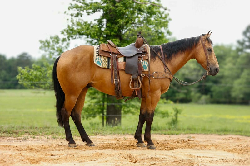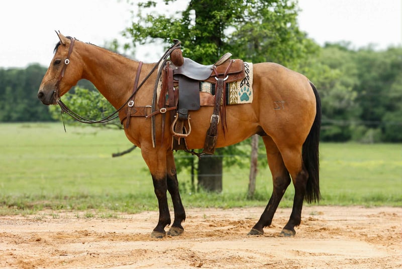 ONLINE AUCTION Place your bids at www.PlatinumEquineAuction.com Starting Bid $3500 Auction ends June 15th, 2025 Need a new saddle? Check out White Rock Saddles on our website or Facebook! Hollywoods Smoke Bar aka Tigger is a 7 year old AQHA buckskin gelding, He stands 15 hands tall and has an excellent pedigree that goes back to Hollywood Dun It! Tigger is a quiet and easy going gelding, he has been trail rode all over, he crosses the creeks, logs and goes anywhere he is asked! Tigger also has a good start in the arena, he lopes nice circles, rides collected and is soft and easy to ride. He knows his leads, has a nice stop and pivots nicely. Tigger has been shown in the Ranch Riding and Trail classes and would excel in the arena. He has also been used outside a lot for most all aspects of ranch work! From doctoring cattle outside to sorting and penning cattle he has done it all! He has a good move in the gate and is quick when he is asked to be! Tigger is a super nice all around gelding! Call or text TR Livestock Rachel 605-370-4644 for more info. He is located in Rusk TX, nationwide shipping is available! ONLINE AUCTION Place your bids at www.PlatinumEquineAuction.com Starting Bid $3500 Auction ends June 15th, 2025 Need a new saddle? Check out White Rock Saddles on our website or Facebook!