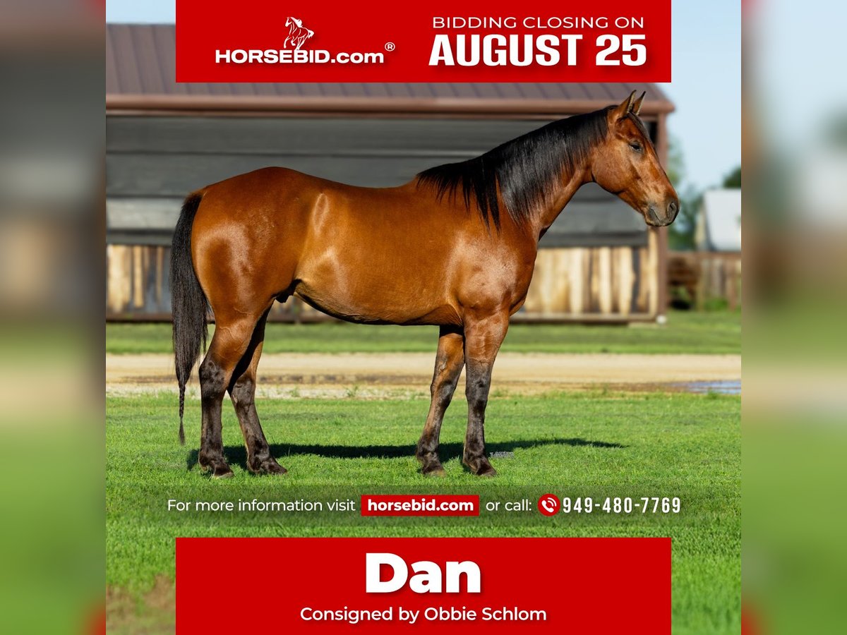 ⭐️ 𝐀𝐔𝐆𝐔𝐒𝐓 𝓐𝓵𝓵 𝓢𝓽𝓪𝓻 𝓛𝓲𝓷𝓮𝓾𝓹 ⭐️ Happening now thru MONDAY | AUGUST 25th - Available EXCLUSIVELY on HorseBid's website! For more details and to register visit: www.Horsebid.com CONSIGNOR CONTACT: Obbie Schlom (949) 480-7769 LOCATION: Canyon, TX BREED: Quarter Horse REGISTERED: Yes REGISTERED NAME: Santa Fe Gallo 809 COLOR: Bay HEIGHT: 15 AGE: 7 GENDER: Gelding "𝐃𝐚𝐧" 𝐒𝐚𝐧𝐭𝐞 𝐅𝐞 𝐆𝐚𝐥𝐥𝐨 𝟖𝟎𝟗 (2018 𝘈𝘘𝘏𝘈 𝘉𝘢𝘺 𝘎𝘦𝘭𝘥𝘪𝘯𝘨) Solid Ranch Gelding. This big, athletic, Gelding is one that's not going to give you a headache, and is as willing as they come. He's broke, moves off your feet, and has the strength to take you miles. Dan's quite literally dog gentle, his demeanor is as laid back as they come but don't let that fool you - he still has the motor to take you to where you want to go and has a nice pretty stop to boot! Dan has been ridden bridleless, he's roped out of the box, more so on the head side. With a few more trips and some seasoning, he'd make someone a very fun head horse. 6 days off, or 6 months off he stays the same. This is a Gelding that will fit all ages, and one that you will want to keep around for the long haul. Point him in any direction you want and have fun with him. If you're looking for a Gelding that won't be a hassle, you can enjoy, or use, Dan is your guy. Great feet, no vices, no soundness issues, passes pre purchase exam, UTD, easy going and great in the arena and outside in the pasture. Located in Canyon, TX and trained by Obbie Schlom.