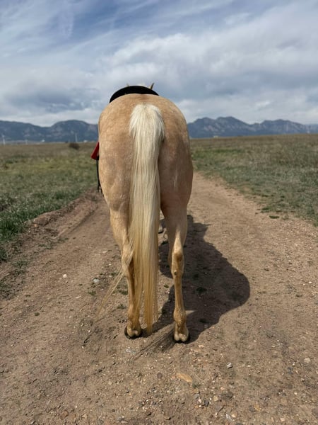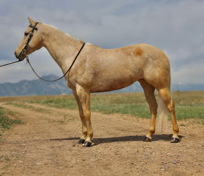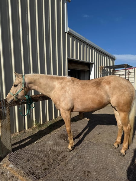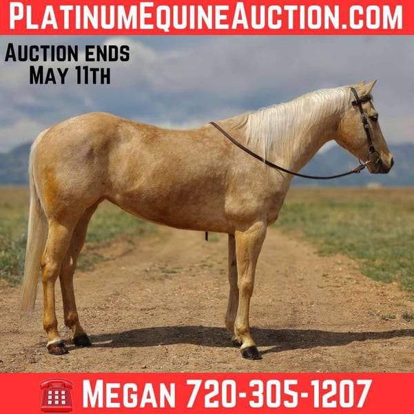 ONLINE AUCTION Place your bids at www.PlatinumEquineAuction.com Starting Bid $3500 Auction ends May 11th, 2025 Need a new saddle? Check out White Rock Saddles on our website or Facebook! DynamiteLethalBlonde aka Dakota is a 2018 model, 15hh, AQHA registered, Palomino mare. Dakota is a true all-around mare and versatile enough to shine in any setting. On the trail, arena work, working cattle, taking jumps, or laying down a barrel pattern (check out those bloodlines) this girl can be ridden by any type of rider. She has had countless beginners on her, videos included in her YouTube link. With years of experience under her belt, Dakota has proven herself repeatedly on countless trail rides, navigating creeks, crossing state roads, and handling various obstacles such as bridges, steep hills, and logs. Dakota’s training is extensive, she neck or direct reins and moves so nicely off your leg. She is fresh out of a 120 day program with a professional cutting trainer where she sharpened his skills on working flag, cattle, chasing sled, closing gates, side passing and more. She also recently completed a cattle clinic at our facility with DJ Dudley. She also had 4 months of English under saddle and over fences training last year. In the video, this is her first time over fences in almost a year and she acts like a seasoned pro. Her gaits are smooth, offering a comfortable ride whether you are walking, trotting, or loping. You could sit her jog all day. She has been desensitized to tarps, pool noodles, flags, and umbrellas. Dakota’s willingness to please extends to her work ethic—she will lead or follow on the trail without hesitation and her easy-going attitude makes her a joy to ride in groups or alone. Loading and unloading her is a breeze, in any type of trailer (video of both in the YouTube link) making trailering to unfamiliar places a hassle-free experience. If you are searching for a well-trained and versatile horse look no further than Dakota. Dakota is an easy keeper and currently on a hay alfalfa mix no grain. She can live alone or with others, she is low woman on the totem pole. Dakota sells with a fresh pair of all around shoes although she can go around comfortably with just fronts. Dakota has a full PPE on file and we have X-rays of her feet, hocks, and stifles. We are selling her because we are downsizing our current string. Located in Arvada, CO. Please call or text Megan Soper 720-305-1207 with any questions not answered in the above ad. Thank you! ONLINE AUCTION Place your bids at www.PlatinumEquineAuction.com Starting Bid $3500 Auction ends May 11th, 2025 Need a new saddle? Check out White Rock Saddles on our website or Facebook!