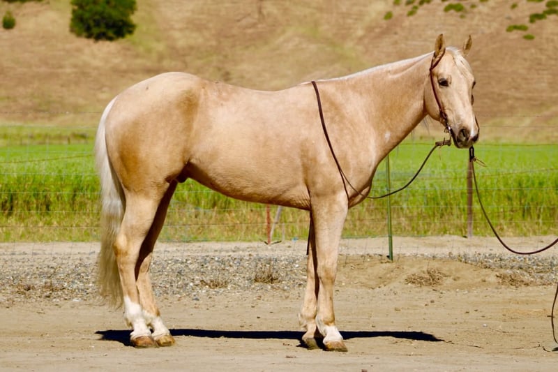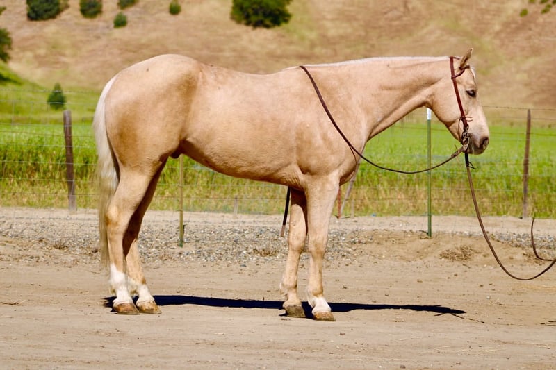 "AVAILABLE ON ONLINE HORSE AUCTION AT www DOT PlatinumEquineAuction DOT com BIDDING OPEN NOW thru SUNDAY | APRIL 26TH! *Final price will be determined on auction site* CONSIGNOR CONTACT INFO: Longhorn Ranch 831-537-1915 LOCATION: Paicines, CA Agent “Golden Outside, Solid All the Way Through.” 8-Year-Old Palomino Gelding • 15 Hands If good horses were easy to find, everyone would have one like Agent… but they’re not—and that’s exactly why he stands out. Agent is a sharp, golden palomino gelding with a kind eye and a willing nature that makes him easy to get along with. He’s the kind that shows up to work with a good attitude. He’s been used to gather cattle and has had some roping in the pasture and lead steer, giving him a practical foundation without being overdone. He’s honest about his job, doesn’t try to outthink you, and seems perfectly content being the one that makes you look good. In the arena, Agent keeps things simple—in a good way. He picks up both leads, has a nice stop, a clean neck rein, and moves through his transitions smooth and correct. No drama, no extra buttons you didn’t ask for… just a horse that does his job and does it right. Outside is where he really proves his worth. Creeks, trees, wildlife, bridges—he handles it all like he’s got better things to worry about. Ride him down the road, haul him to town, take him to the trail course—flags, tarps, balls—he’s seen it and decided none of it is worth getting worked up over. (Unlike some who still flinch at plastic bags.) He’ll stand tied like he’s got nowhere else to be, settles in wherever you put him, and handles new places without making it a production. The kind you can count on to act the same whether he’s at home or somewhere new. Around the barn, he’s easy—catch him, tack him, clip him, bathe him… he’s agreeable about all of it. No negotiations required. Agent is a good-minded, broke gelding with a solid foundation and a disposition that’s hard to beat. The kind that quietly earns his keep and makes every ride a good one. He is safe for all levels of riders. Longhorn Ranch • Paicines, CA Dina • 831:537:1915 Shipping anywhere with a reputable hauler — call to find out more about this fantastic boy. We can video chat or you’re welcome to come meet him in person.