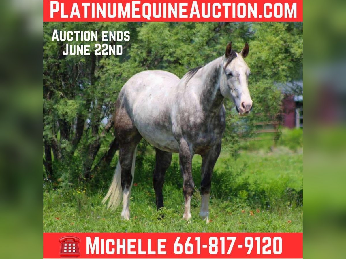 ONLINE AUCTION Place your bids at www.PlatinumEquineAuction.com Starting Bid $3500 Auction ends June 22nd, 2025 Need a new saddle? Check out White Rock Saddles on our website or Facebook! Meet Armani, the stunning first-class gelding that everyone’s been searching for! At just 7 years old and standing a solid 15 hands tall, he’s not only a head-turner with his gorgeous dapple grey coat and all the chrome you could ask for, but he’s also a true gem when it comes to versatility. Armani has dabbled in a little bit of everything, from ranch work to hitting the trails, and he’s always ready to tackle whatever job you throw his way. This handsome guy has spent plenty of time working on the ranch, checking cattle, riding fence lines, sorting, and shipping cattle. He truly knows what it means to put in a hard day’s work! When it comes to trail riding, Armani has seen it all—from the rolling hills of Texas to the breathtaking landscapes of Wyoming. He’s sure-footed and has a heart the size of Texas, confidently navigating up and down mountains, crossing logs, ditches, and bridges, and breezing through brush without a hitch. He’s encountered all sorts of wildlife out on the trails, and he takes it all in stride. What’s more, Armani has the easygoing attitude of an old soul. He’s a super sweet guy who loves being around people and thrives on attention. In the arena, he’s a star! He will walk, trot, and lope circles like a pro, carries a flag with pride, and walks over tarps without a second thought. Armani has even tackled extreme trail courses, happily going over logs, splashing through water, and stepping over tires, always giving 110% and ready for more. He’s been out in town, riding down busy highways with traffic zooming by, and he marched right through the famous Fort Worth Stockyards like the seasoned pro he is. Everyone who meets Armani falls head over heels for him. He’s an exceptional young gelding with a heart of gold, watch his video and see how truly amazing and versatile he is. We are open to anyone interested in him to schedule a time to come see him or if you can’t make it schedule a FaceTime showing to see him. If you need help with transport don’t hesitate to ask we have a list of reputable haulers that can get him safely to your doorstep WORLD WIDE including, Alaska , Mexico, Hawaii, Canada and anywhere in between from Stephenville, TX. Contact M$ Performance Horses Michelle 661-817-9120 with any questions. ONLINE AUCTION Place your bids at www.PlatinumEquineAuction.com Starting Bid $3500 Auction ends June 22nd, 2025 Need a new saddle? Check out White Rock Saddles on our website or Facebook!