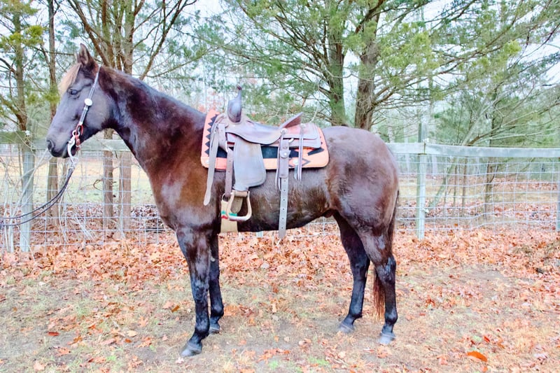"""AVAILABLE ON ONLINE HORSE AUCTION AT www.MagicHorseAuction.com BIDDING OPEN NOW thru TUESDAY | December 23RD! BUY IT NOW AVAILABLE! *Final price will be determined on auction site* CONSIGNOR CONTACT INFO: Christopher Tejero #908-334-4416 LOCATION: 4727 Moss Mill Rd., Egg Harbor City, NJ, 08215" "Looking for a true all-around horse? Look no further! Jett is a 7-year-old, 15.1–15.2hh grade gelding (Quarter Horse type) who can go English or Western with ease. He’s done a little bit of everything—pushing cattle, trail riding, jumping 2' courses, and working summer camp. Jett would make a phenomenal addition to a lesson program, IEA/IHSA team, or a rider who simply wants to have fun. He’s suitable for an intermediate rider and up (or advanced beginner with a trainer). Jett is a pleasantly literal ride without being overly sensitive—he’ll happily go on cruise control at whatever pace you choose. His trot and canter are incredibly smooth, and he’s got a great “whoa” off voice commands. Rides English or Western, neck reins or direct reins, and is a point-and-shoot type over fences—he won’t punish you for mistakes and keeps his cool no matter what. Personality: He’s as easygoing as they come and has that steady “old soul” vibe despite being only seven. Easy to catch, groom, and tack. The same horse on or off property, good for baths, loading (step-up or ramp), farrier, and vet, and ties/cross-ties like a pro. Jett is up to date on shots, Coggins, and farrier, and is ready to find his forever home. ❤️ "