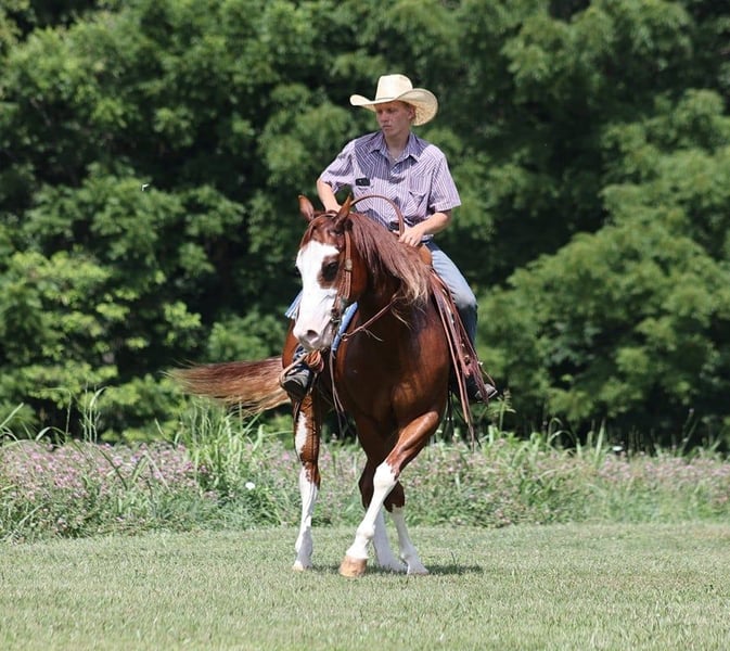 ONLINE AUCTION Place your bids at www.PlatinumEquineAuction.com Starting Bid $3500 Auction ends August 18th, 2024 Need a new saddle? Check out White Rock Saddles on our website or Facebook! All’s Lip Smacking Good aka Smack is a stout built Chestnut Overo horse standing around 15.1hh and he is a 2018 Model Registered APHA Gelding. He has an excellent pedigree going back to the famous Topsail Whiz who is an AQHA Hall Of Famer who has sired over $12 Million Dollars in offspring. The Topsail Whiz bloodline is well known throughout the reining world and also in the cowhorse world. Since owning Smack he has been used at the stockyards to pen cattle, we’ve had him out in the pasture gathering cattle and he has roped a couple as well. He has been started on the roping dummy and is doing a good job tracking it. He knows his way around the ranch and has plenty of cow sense. Smack is an excellent horse to take for a relaxing trail ride as he is great on trails and he will cross creeks, ditches, logs and navigate rough rocky areas. He has a smooth jog, a VERY VERY nice easy to set lope, a good stop, turns a circle both ways and backs with ease! Smack has had some reining training and would be an excellent horse to enter the show pen in the ranch horse classes. He rides with his head low and will keep a loose/draped rein. He has been exposed to all kinds of wildlife. He will go up or down steep slopes, across deep creeks, over downed trees, and over all types of rough terrain while still being sure footed. He has been ridden through town and is safe in traffic is not spooky. Smack is an excellent horse for any job around the ranch or trails! He is located in Level Green, KY. Feel free to call Moore Trained Horses Logan 765-265-0033 with any questions. ONLINE AUCTION Place your bids at www.PlatinumEquineAuction.com Starting Bid $3500 Auction ends August 18th, 2024 Need a new saddle? Check out White Rock Saddles on our website or Facebook!