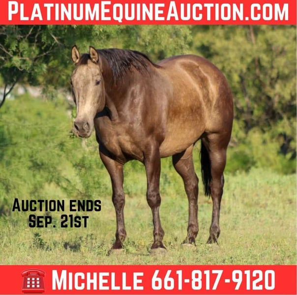 ONLINE AUCTION Place your bids at www.PlatinumEquineAuction.com Starting Bid $3500 Auction ends September 21st, 2025 Need a new saddle? Check out White Rock Saddles on our website or Facebook Meet Cisco Kid – a true standout in both looks and personality. This gorgeous sooty buckskin gelding is the prime age of 7 years old and stands a solid 15.2 hands tall. Built like a tank and as stout as they come, Cisco is the kind they just don’t make anymore – wide, strong, and made to last. Cisco has been ridden extensively on ranches and in the rugged mountains of Wyoming and Montana, proving himself as a sure-footed, reliable trail partner. Whether it’s climbing steep terrain or navigating rocky trails, Cisco handles it all with confidence and ease. What truly sets Cisco apart is his gentle, puppy-dog personality. He loves attention, thrives on connection, and is a genuine people pleaser. He’s the type to meet you at the gate, looking for love and ready for whatever job you have for him. In the arena, Cisco is well broke – he walks, trots, and lopes circles with ease. He’s laid-back and more “whoa” than “go”, making him an excellent choice for riders who want a calm, steady partner. He’s big and sturdy enough to carry your husband down the trail, but sweet and responsive enough to be enjoyed by the whole family. Cisco Kid is the kind of gelding that’s hard to find – handsome, handy, and honest with a heart of gold. Don’t miss out on this gentle giant! He does have a scar on his right shoulder it does not effect him In anyway and is just cosmetic. We are open to anyone interested in him to schedule a time to come see him or if you can’t make it schedule a FaceTime showing to see her. If you need help with transport don’t hesitate to ask we have a list of reputable haulers that can get him safely to your doorstep WORLD WIDE including, Alaska , Mexico, Hawaii, Canada and anywhere in between. Call or Text Michelle with M $ Performance Horses 661-817-9120 with any questions. ONLINE AUCTION Place your bids at www.PlatinumEquineAuction.com Starting Bid $3500 Auction ends September 21st, 2025 Need a new saddle? Check out White Rock Saddles on our website or Facebook
