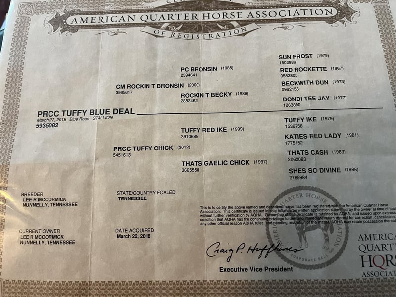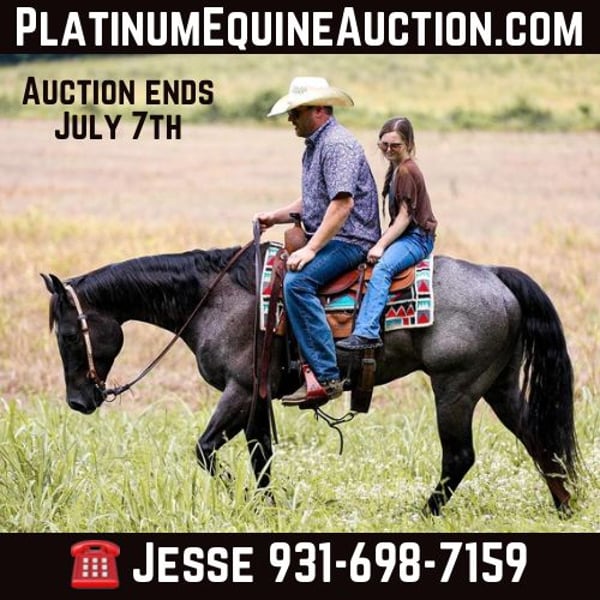ONLINE AUCTION Place your bids at www.PlatinumEquineAuction.com Starting Bid $3500 Auction ends July 7th, 2024 Need a new saddle? Check out White Rock Saddles on our website or Facebook! ARCC Tuffy Blue Deal aka Tuffy is a registered 2018 model AQHA blue roan gelding that aims to please. This is one that is a barn favorite to anyone who comes by rather it’s taking him for a swim or just feeding him treats in the pasture Tuffy is sure to win you over. He stands right at 15.2hh and is as blue as the sky with the kindest eye you will ever see. Tuffy has been used for just about everything you could imagine doing horseback. We have caught cattle, drug calves, snubbed colts, given lessons, done the obstacles and so much more. He is the definition of an all around gelding with a heart of gold. Tuffy has been ridden thousands of miles on a feeder calf operation and then can be turned over to the kids for a fun trail ride or swim in the creek. He stands to be saddled, mounted and bathed. He’s one of the farriers favorite horses to shoe and will be one of your favorites to ride. He rides calm, quiet and safe with an attitude that’s always looking to please. For more info on Tuffy call or txt Jesse Thomas 931-698-7159 Located in Santa Fe, TN. ONLINE AUCTION Place your bids at www.PlatinumEquineAuction.com Starting Bid $3500 Auction ends July 7th, 2024 Need a new saddle? Check out White Rock Saddles on our website or Facebook!