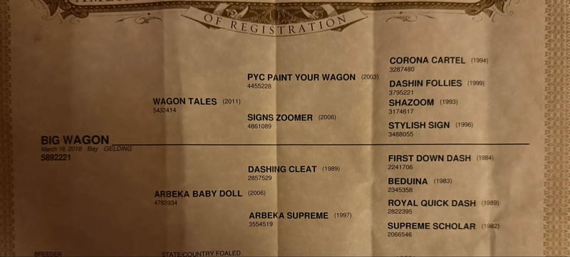 ONLINE-AUKTION Geben Sie Ihre Gebote unter www.PlatinumEquineAuction.com ab. Startgebot $3500 Die Auktion endet am 5. Januar 2024 Brauchen Sie einen neuen Sattel? Schauen Sie sich White Rock Saddles auf unserer Website oder Facebook an! A Big Wagon, aka "Wheelie" ist ein 2018 Modell, 15,3H AQHA braunen Wallach, dass das Gesamtpaket ist! Wir haben ihn ursprünglich als Prospect für unsere persönliche Kette gekauft, und ich kann Ihnen sagen, dass wir ihn absolut LIEBEN! Der einzige Grund, warum er verfügbar ist, ist, dass wir einfach keine Zeit für ALLE großartigen Pferde haben, die wir haben. Zum Glück für Sie bedeutet das, dass dieser außergewöhnliche Wallach Ihnen gehören könnte! Wheelie ist so anfängerfreundlich wie nur möglich, entspannt, sanft und ein absoluter Traum zu reiten. Für sein Alter findet man selten ein Pferd mit einem so hervorragenden Verstand! Er ist 100%ig sicher und vernünftig, kein Erschrecken, kein Bocken, kein Durchgehen, kein Rückwärtsrichten. Neue Orte und Erfahrungen? Er bewältigt sie wie ein erfahrener Profi! Lassen Sie sich nicht von seinem doppelt geführten Stammbaum einschüchtern, er ist nicht "heiß" oder übermäßig vorlaut im geringsten. Dieser Kerl ist brav, wie man es sein sollte! Er geht am Hals, wechselt mühelos die Gangarten und bleibt stehen, wenn man ihn darum bittet. Seine Gänge sind unglaublich bequem und machen jeden Ritt zu einem absoluten Vergnügen. Reden wir über seine Persönlichkeit: Wheelie ist eines der süßesten Pferde, die Sie je kennenlernen werden. Er liebt Aufmerksamkeit, hat ein Herz aus Gold und ist immer bereit für sein nächstes Abenteuer! Darüber hinaus ist Wheelie ein toller Beweger mit grenzenlosem Potenzial. Er ist sowohl im Barrel Pattern als auch im Englischen geritten worden. Ob Sie also einen Barrel Prospect, ein sicheres Pferd für die Kinder oder einfach nur einen zuverlässigen Partner zum Entspannen auf den Trails suchen, Wheelie ist Ihr Mann. Er ist vielseitig genug, um in einem leistungsorientierten Zuhause zu glänzen, würde sich aber genauso gut als Vertrauensperson oder Familienpferd eignen. Er wäre sogar ein fantastisches Lehrpferd für Anfänger oder Kinder! Als 2-Jähriger lief er auf der Rennbahn, aber sein sanftes Benehmen machte ihn zu einem noch besseren Ponypferd. Nach seiner Zeit auf der Rennbahn verbrachte er einige Zeit mit einem Gentleman, der ihm einen soliden Umgang beibrachte, und jetzt ist er bereit für sein nächstes Kapitel mit Ihnen! Wheelie ist in jeder Hinsicht einfach zu handhaben. Er lädt, führt, schleppt, badet und bindet an wie ein Champion. Seine Zähne, Füße und Coggins sind auf dem neuesten Stand, und er ist bereit für sein neues Zuhause! Lassen Sie sich diesen außergewöhnlichen Wallach nicht entgehen. Er ist die Art von Pferd, in die sich die ganze Familie verlieben und für die sie eine Verwendung finden wird! Egal, ob Sie auf den Trails unterwegs sind, Fässer laufen wollen oder einfach nur einen sicheren, zuverlässigen Partner suchen, Wheelie ist das Gesamtpaket. Lassen Sie sich diesen Hund nicht durch die Lappen gehen! Schauen Sie sich sein VOLLES Video an und besuchen Sie seine Website northtexashorsecompany.com/wheelie für mehr Bilder und Filmmaterial! Bitte rufen Sie Dale Beddou 435-669-9159 an. Wir LIEBEN es, über ihn zu sprechen! Wir befinden uns in Fredricksburg, TX und können helfen, erschwingliche Versand an jeden zu arrangieren!!! Geben Sie Ihre Gebote unter www.PlatinumEquineAuction.com ab. Startgebot $3500 Die Auktion endet am 5. Januar 2024 Brauchen Sie einen neuen Sattel? Schauen Sie sich White Rock Saddles auf unserer Website oder Facebook!