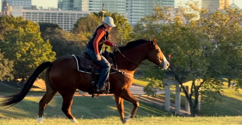 ONLINE AUCTION Place your bids at www.PlatinumEquineAuction.com Starting Bid $3500 Auction ends December 8th, 2024 Need a new saddle? Check out White Rock Saddles on our website or Facebook! A Big Wagon, aka “Wheelie” is a 2018 model, 15.3H AQHA bay gelding that is the total package!We originally bought him as a prospect for our personal string, and let me tell you, we absolutely LOVE him! The only reason he’s available is because we just don’t have time for ALL the great ones we have. Lucky for you, that means this exceptional gelding could be yours! Wheelie is as beginner friendly as they come, laid back, gentle, and a total dream to ride. For his age, you rarely find one with such an outstanding mind! He’s 100% safe and sane, no spook, no buck, no bolt, no rear. New places and experiences? He handles them like a seasoned pro! Don’t be intimidated by his double running bred pedigree, he’s not “hot” or overly forward in the least. This guy is broke like one should be! He neck reins, switches gaits with ease, and stops when asked. His gaits are incredibly comfortable, making every ride an absolute pleasure. And let’s talk about his personality, Wheelie is one of the sweetest horses you’ll ever meet. He loves attention, has a heart of gold, and is always ready for his next adventure! On top of that, Wheelie is a fancy mover with limitless potential. He’s been started on the barrel pattern and has also been ridden English, so whether you’re looking for a barrel prospect, a safe horse for the kids, or just a steady partner to relax on the trails, Wheelie is your guy. He’s versatile enough to shine in a performance home but would be just as happy being the go to confidence builder or family horse. He’d even make a fantastic lesson horse for beginners or kids! He ran on the track as a 2 yr old but his gentle demeanor made him an even better pony horse. After his track days, he spent time with a gentleman who gave him a solid handle, and now he’s ready for his next chapter with you! Wheelie is easy to handle in every way. He loads, leads, hauls, bathes, and ties like a champ. He’s up to date on teeth, feet, and Coggins, and he’s ready to go to his new home! Don’t miss out on this exceptional gelding. He’s the kind of horse the whole family will fall in love with and find a use for! Whether you’re hitting the trails, wanting to run barrels, or just looking for a safe, reliable partner, Wheelie is the total package. Don’t let this one slip through your fingers! Watch his FULL video and go to his website page northtexashorsecompany.com/wheelie for more pictures and footage! Please call Blair with North Texas Horse Company for more info at 817-757-3046. We LOVE to talk about him! We are located in Weatherford, TX and can help arrange affordable shipping to anyone!! ONLINE AUCTION Place your bids at www.PlatinumEquineAuction.com Starting Bid $3500 Auction ends December 8th, 2024 Need a new saddle? Check out White Rock Saddles on our website or Facebook!