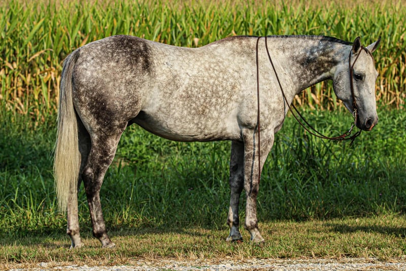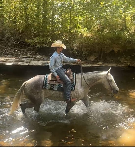 ♦️ 𝐭𝐡𝐞 𝐀𝐌𝐄𝐑𝐈𝐂𝐀𝐍 𝓕𝓪𝓵𝓵 𝓒𝓵𝓪𝓼𝓼𝓲𝓬 ♦️ Happening now thru MONDAY | OCTOBER 20th - Available EXCLUSIVELY on HorseBid's website! For more details and to register visit: www.Horsebid.com CONSIGNOR CONTACT: Tasha Ijames 270-844-2400 LOCATION: Henderson,KY BREED: Quarter Horse REGISTERED: No COLOR: Grey HEIGHT: 15.3 AGE: 7 GENDER: Gelding Waylon is a 7yr old grade quarter horse gelding standing at 15.3hh! He is a gorgeous dapple gray, with the sweetest personality! He is a dream to ride! He has the smoothest trot and canter! His walk, is easy and slow making him a great trail horse! He is very forgiving, and a great horse for all levels of riders! He is safe and dependable! Waylon moves nicely and listens to cues well! You can saddle him up and ride off or just hop on him bareback. He is as honest as the day is long and the same horse everytime you take him on a ride! We have taken Waylon to state parks on rides and overnight camping trips! He does great at new places and takes everything in stride! Waylon is great in all types of trail group settings, and will lead the pack or follow! He is remarkably surefooted, you can count on him to pay attention and navigate any terrain you put in front of him. He loves water and will cross creeks, steps over logs and doesn't mind the steep hills! He doesn't mind the traffic, heavy machinery and is used to being around dogs as well! Waylon has also turned back cattle, has been ridden all over the pastures checking yearlings and cow/calf pairs. He has been roping the sled and doing great. He is an all around sweet gelding and so fun to ride! Waylon also rides very well in the arena, he will pick up both leads, he stops and backs up! You can ride him on a lose rein and neck rein or he will direct rein as well! He is a very smart guy and adapts well to new riders! Waylon is one of the sweet and gentlest gelding you will meet! He is very affectionate and is the first to meet you at the gate, and will be a great asset to become a lifetime partner for the family! If you would like to schedule a time to come meet and ride Waylon, or have any other questions about Waylon feel free to reach out to Tasha at 270-844-2400. We are located in Henderson KY and can assist with transportation arrangements. Don’t let this amazing gelding get away from you if you wanting something big, beautiful and dependable.