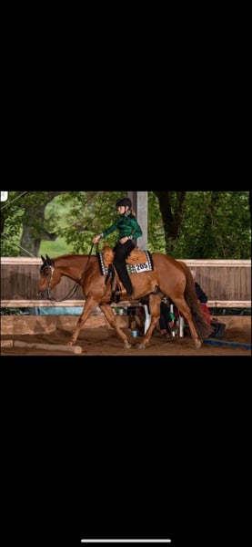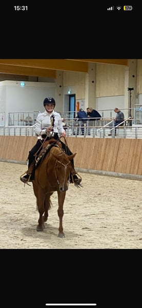 ✨Charmanter Quarter Horse Wallach mit tollem Allround-Potential sucht neues Zuhause ✨ Teddy ist ein talentierter, 8-jähriger Quarter Horse Wallach mit bester Pleasure- und Allround-Abstammung. Seine Mutter HC So Plenty Cool stammt vom bekannten Hengst Max Goodn Plenty und wurde direkt aus den USA importiert. Sein Vater HC Sexy Sudden ist ein erfolgreicher Sohn des renommierten RL Best Of Sudden. Teddy überzeugt nicht nur mit seiner liebenswürdigen Art und einem korrekten Gebäude, sondern auch mit seinen besonders bequemen Gängen und seinem Talent in den Disziplinen Trail und Pleasure. Er wurde bereits erfolgreich auf Turnieren vorgestellt – sowohl von mir in den Erwachsenenklassen als auch von meiner Schwester in den Jugendklassen. Er kennt sowohl die Box mit Paddock als auch Offenstallhaltung und genießt im Sommer ganztägigen Weidegang. Gesundheitlich ist Teddy topfit und zeigt sich zuverlässig im Umgang – brav beim Schmied, Verladen und Tierarzt. Da ich zeitlich aktuell stark eingebunden bin und meinen reiterlichen Schwerpunkt auf Reining verlagert habe, wünsche ich mir für Teddy ein liebevolles neues Zuhause. 5 Panel n/n Bei weiteren Fragen können sie mich gerne anrufen. 015901395486
