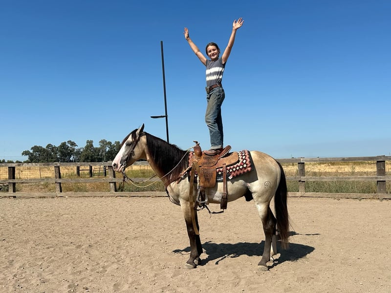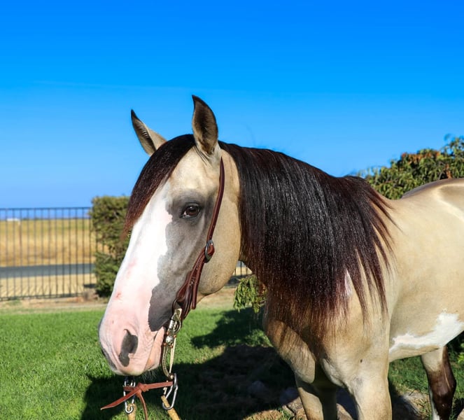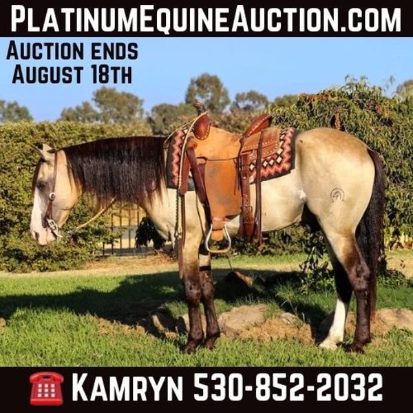 ONLINE AUCTION Place your bids at www.PlatinumEquineAuction.com Starting Bid $3500 Auction ends August 18th, 2024 Need a new saddle? Check out White Rock Saddles on our website or Facebook If you are looking for SAFE for your mom/dad/grandma/the kids/ your friends/ the neighbor stop what you’re doing and look at Bo! Meet Bo he’s a 7 year old 14.2 hands gelding. This guy has sure been a joy to have around he’s been the easiest horse there is. We have thrown anybody and everybody on him and he’ll pack them around no matter what. His stunning color and mane and tail draw attention where ever this guy goes! Everyone always turns their heads and wants to pet this sweet boy and he will take it all in. He is a puppy dog he’ll be happy to hang out in the backyard with you and eat some grass or get pampered and braided it’s his favorite. He is FANCY broke he has a great stop, good spins each way, picks up his leads. Bo has the slowest smoothest rocking horse lope you could want one to have. He is a more woah than go kind of horse he’s happy to just cruise down the trails! He’s a saint on the trails he goes through water, logs, ponds, creeks,waterfalls, the beach he’s a been there done that attitude. He’s seen bikes, hikers, wildlife, and more. Bo is also a finished heel horse and is quiet in the box does not get hot scores like a rock. He can continue to rope or change his career and just be your next leisurely trail horse or horse for the grand kids. He’s been through all the obstacles with out a care in the world like it’s just another day. Bo has also been ridden in town with rushing traffic, semis, horns honking, kids running around, motorcycles you name it! Bo stands to be groomed, saddled, bathed, farrier. He loads up easy as they come doesn’t rush to get out or in the trailer takes his time. He is great with other horses in pasture or in a stall. He is ready for his brand new adventure! Please watch Bo’s whole video as it shows EVERYTHING this special boy can do. People drive the wheels off there truck looking for a horse like this and here he is! Please feel free to reach out to us at KW Ranch and Performance Horses Kamryn 530-852-2032 for anymore info on Bo! Located in Pleasant Grove, CA. ONLINE AUCTION Place your bids at www.PlatinumEquineAuction.com Starting Bid $3500 Auction ends August 18th, 2024 Need a new saddle? Check out White Rock Saddles on our website or Facebook