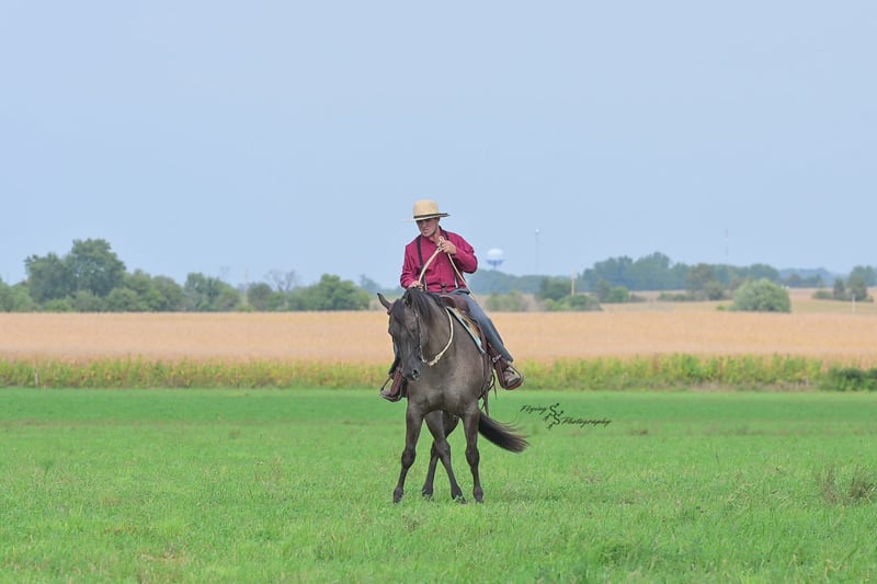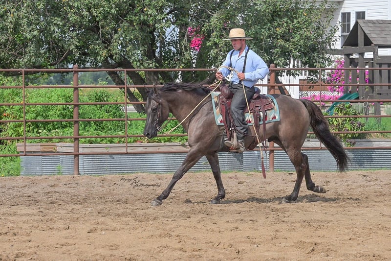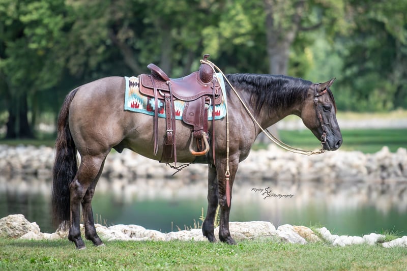 ONLINE AUCTION Place your bids at www.PlatinumEquineAuction.com Starting Bid $3500 Auction ends October 5th, 2025 Need a new saddle? Check out White Rock Saddles on our website or Facebook Ladies and Gentleman, feast your eyes on a stunner that will turn heads and steal hearts with just a glimpse. “A Nickle Fritz” is a reg AQHA Gelding who is a 2017 model, classy looking Grulla color standing 14.3hh. Fritz checks many boxes for those of you searching for a family, trail, or a ranch show horse. At 8 years old, he has years of experience under his belt, giving you the same honesty and maturity in every ride, no matter how much time he is given off. Fritz is suitable for almost any level or age rider. Any adult or experienced child will get along wonderfully with him, we recommend a beginner child to be in a controlled environment with supervision when riding him as we have not personally turned the kids loose with him. Fritz would make a phenomenal addition for anyone who would like to show in the ranch horse classes. He is experienced on the trails; whether riding through open plains or through thick timber. He will cross ditches, water, downed timber, and do it all with a graceful ease. Whether you ride him at the lead, middle or end of the group, Fritz will ride quietly. He also rides out alone without any fuss. Fritz is accustomed to riding down busy highways, and through the mainstreets of our small town. He is not bothered by traffic or pedestrians, he is even used to the horseplay you’ll find around jungle gyms at the park. One thing that I absolutely love about Fritz is how agile he is; you can see that he puts thought into the placement of each foot and is totally aware of his body position. Fritz has a lovely extended trot, smooth transitions, a true one hand neck rein, and an easy stop. He will lope beautiful, even circles; picking up his leads correctly on cue with a smooth departure. Fritz will side pass, open and close gates, and has a very correct turn around. He will ride bareback and even ride bridleless – whether you are in the arena, on mainstreet, or out in the wide open fields. Fritz has been hauled a lot and has seen the sights, helping him to be seasoned and comfortable away from home. He loads and trailers with ease. Fritz is wonderful for the farrier, and stands perfectly to be shoed. He is easy to bathe as well. Fritz is comfortable whether he is stalled or turned out in the pasture, and gets along well with pasture mates. Included in his paper work is a 5 panel genetic test result, all of which are negative (5 panel n/n). Fritz is a true pleasure to be around, and I know you will enjoy him as much as I have. If you have any questions, or would like to meet Fritz prior to the auction ending, please call Edwin at 319-283-0616. ONLINE AUCTION Place your bids at www.PlatinumEquineAuction.com Starting Bid $3500 Auction ends October 5th, 2025 Need a new saddle? Check out White Rock Saddles on our website or Facebook