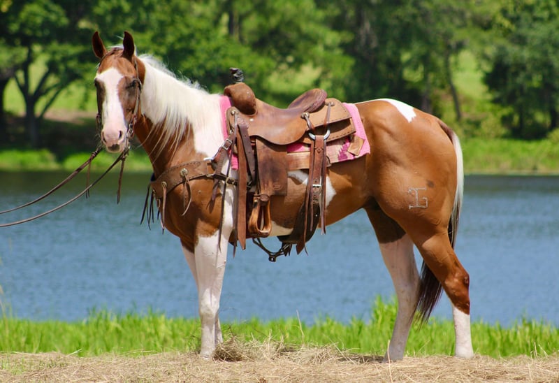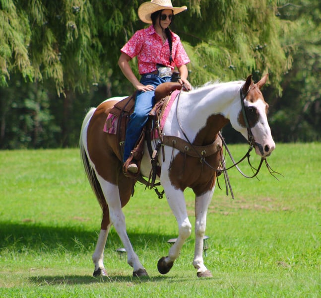 ONLINE AUCTION Place your bids at www.PlatinumEquineAuction.com Starting Bid $3500 Auction ends August 18th, 2024 Need a new saddle? Check out White Rock Saddles on our website or Facebook! Wishbone is a super flashy paint gelding. He is the perfect age of 7 years old. He stands 14.3 hands tall. Wishbone has some very unique markings and he definitely stands out in a crowd! Wishbone is a seasoned trail horse, he’s been used around cattle and tracking the dummy. He also has done many charreadas as a teenage boys mount. He has been ridden all over the place and is traffic safe. He is used to dogs being underfoot. Been around all forms of farm equipment. He is absolutely willing to do whatever is asked of him honestly and tries very hard to please. Wishbone has a wonderful handle to him, he one hand neck reins and has a big stop. He has a beautiful slow lope that you could ride all day! Wishbone is good for baths, the shoer, loading and unloading in the trailer and is extremely easy to catch. He takes a saddle and headstall well. Wishbone is safe and gentle for most any level of rider. He is so much fun to ride and we have really enjoyed him. Please do not hesitate to call or text Alicia Darling 903-840-8010 with any questions. Located in Willis Point, TX. ONLINE AUCTION Place your bids at www.PlatinumEquineAuction.com Starting Bid $3500 Auction ends August 18th, 2024 Need a new saddle? Check out White Rock Saddles on our website or Facebook!