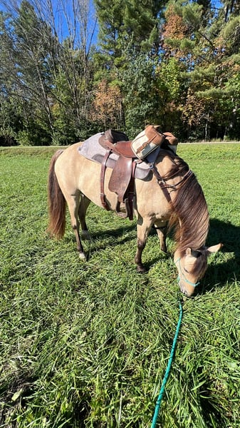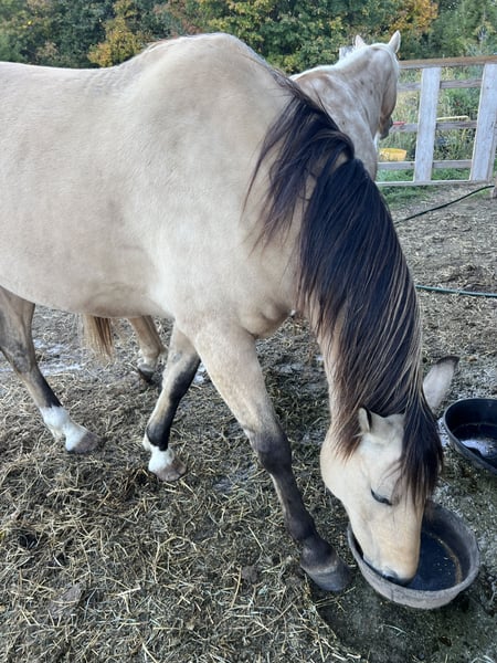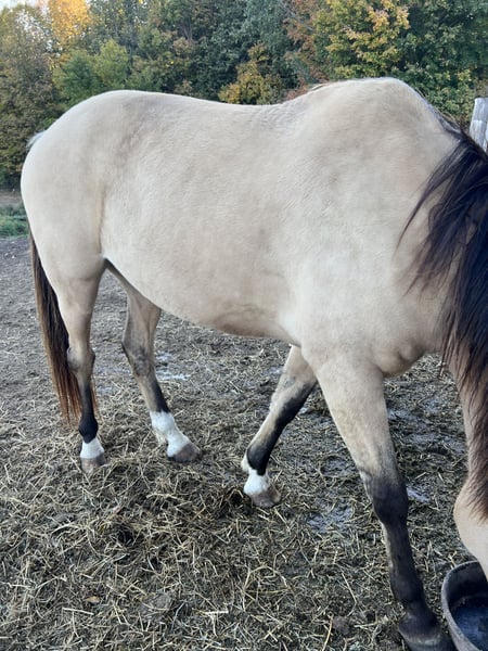9 yr old AQHA registered dun/bucksin (dunskin) gelding. No bolt, buck, or rear. Good with farrier, will stand for saddling and mounting, including mounting block, teeth recently floated, utd on coggins and vaccines, no maintenance or shoes, friendly, stands tied, trailers great-will even unload self if needed, has been weekend camping and trail riding, can be kept as a single horse if needed as well, will ride out alone, AQHA papers in hand. Not a huge fan of fly spray but gets over it, sometimes mouths the bit, but can ride with a hackamore or bridleless. sometimes spooks with a startle but no bolt, buck, or rear, middle of herd. Loves treats. Email jandhcerveny@yahoo.com for more photos/videos.