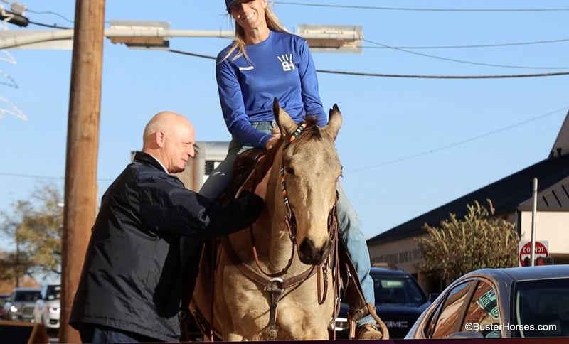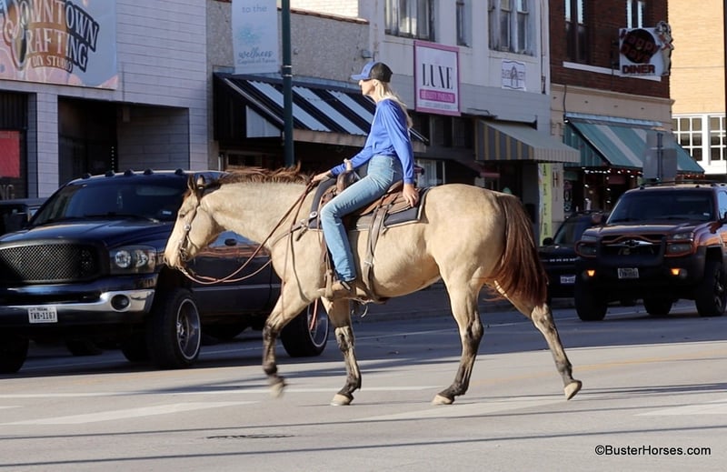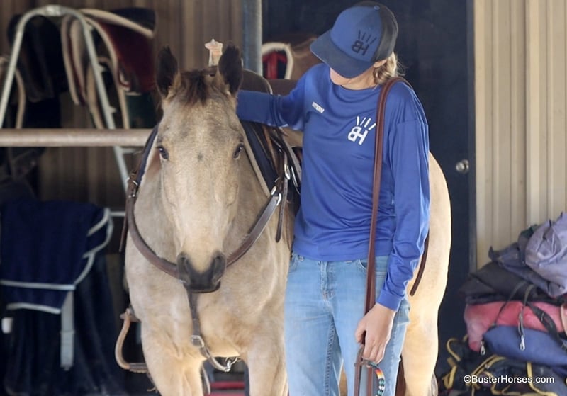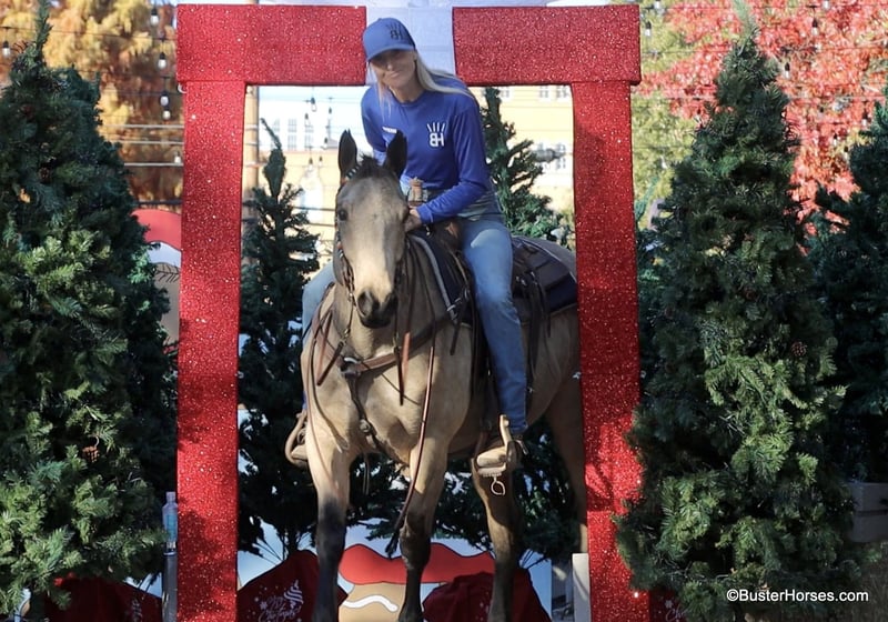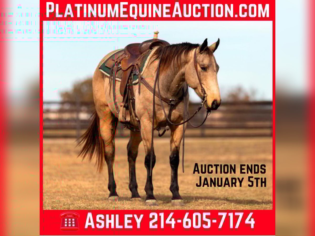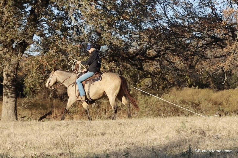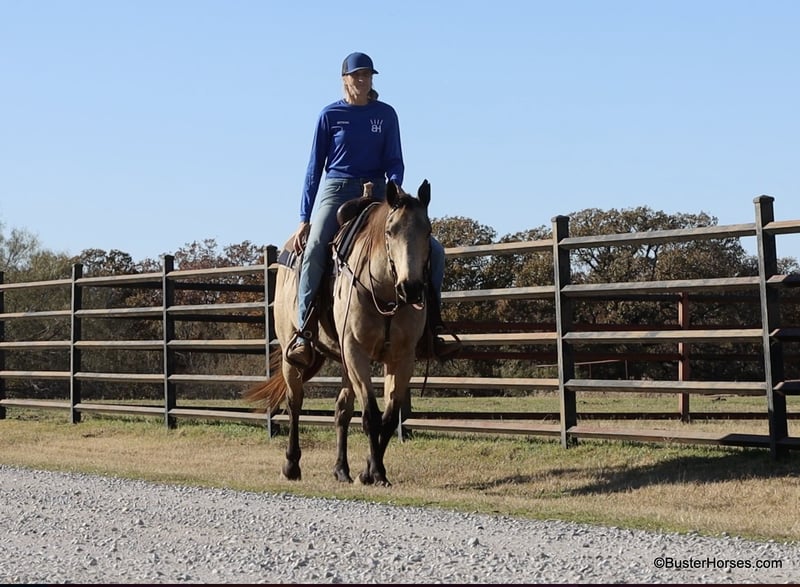 ONLINE AUCTION Place your bids at www.PlatinumEquineAuction.com Starting Bid $3500 Auction ends January 5th, 2024 Need a new saddle? Check out White Rock Saddles on our website or Facebook! Jackrabbit is a 2017 model gelding standing 15hh. He is a seasoned ranch gelding that has been all over – he’s been used on big ranches in New Mexico, Colorado, and in Texas – and he has done his job well with all different levels of riders on him. He is extremely smooth gaited and has the most tolerant kind take-care-of-you personality, he aims to please PERIOD in all situations. He has an incredibly solid, mature-beyond-his-years disposition. He is an own son of Dun It With A Twist and he is out of an old-school Genuine Doc Peponita Pine X Watch Joe Jack bred mare. This cool gelding got his name from his ridiculous endearing little/but large, can’t-help-but-love-em ears – they are unique and adorable!! He is like an all-terrain vehicle!!! He literally can go up, over, into, and through almost anything you point him at – and he does it gracefully, willingly, and boldly while still also being careful where he puts himself and his rider. He absolutely loves going into town, he genuinely enjoys seeing everything new and meeting the people. He hops right on the trailer and has absolutely no vices or bad habits. He will ride out alone willingly and has many many miles riding out in the open alone. He is easy to mount and dismount and is extremely uncomplicated to ride. He has a nice handle on him, you can ride him anywhere with one hand and he travels comfortably at all three gaits. He easily picks up either lead, has a great stop, back up, and turn around on him. He is naturally very balanced, low headed, and relaxed. He has worked more gates than you can count and knows his job there. He has sorted in the actual sorting pens for years, and would make a great horse for the sorting or penning competitions – he’s done that job in real life, for hours and hours for several days and he knows the deal! He has also been lightly started in the roping pen and is just the right age to start hauling and seasoning for that job. He does have some speed and run when you ask him, and would make a great all-around Junior, High School, or College rodeo horse. Has a ton of natural rate and stop, and plenty of cow – would quickly make a breakaway horse as well. He is a flat, level, and cute enough mover to also be very capable of playing around at the local entry level ranch horse competitions, or go to 4-H and be competitive. A gelding this versatile, athletic, seasoned – plus kind natured, and this perfect age – plus BUCKSKIN, is not a gelding we get every week. Come check him out anytime! Jackrabbit was just recently maintained by the chiropractor, the equine dentist, and was just shod by the farrier, wormed, and he has a fresh Coggins. We can quickly and easily get travel health papers drawn up anywhere you need him to go. He will arrive to his new owner with all cares in order and ready to do whatever job you have for him. Please feel free to reach out to us to come ride and try Jackrabbit, we would love to meet you in person and show him to you. We are conveniently located only an hour from a large centrally located international airport, making coming to see him possible no matter where you live! Please check out Buster Horses / Buster Ranch our past customer reviews on Google, Facebook, and our own website. And please go to Jackrabbit’s web page for more information, pictures, and for additional videos: BusterHorses.com/Jackrabbit We are located in Weatherford, TX. Call Buster Horses Ashley 214-605-7174 with any questions. ONLINE AUCTION Place your bids at www.PlatinumEquineAuction.com Starting Bid $3500 Auction ends January 5th, 2024 Need a new saddle? Check out White Rock Saddles on our website or Facebook!