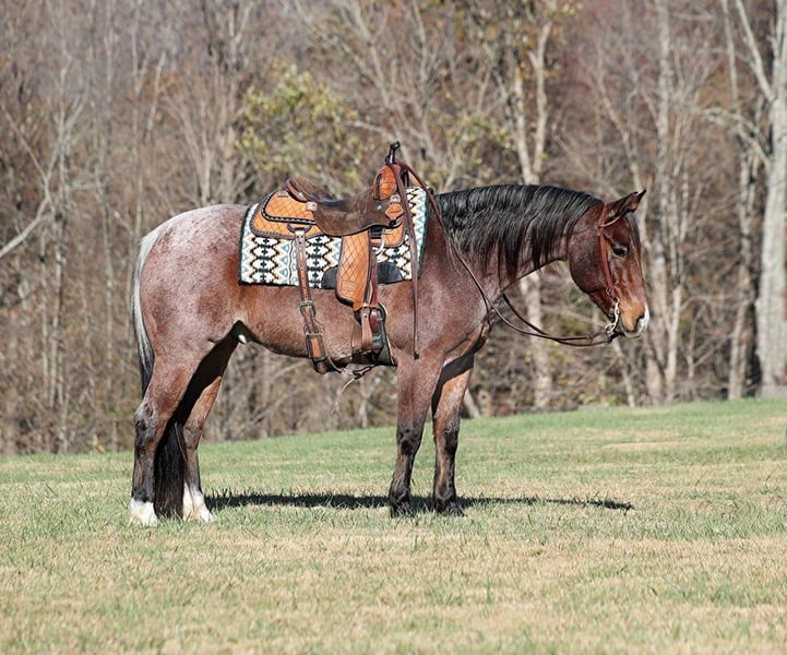 ONLINE AUCTION Place your bids at www.PlatinumEquineAuction.com Starting Bid $3500 Auction ends November 24th, 2024 Need a new saddle? Check out White Rock Saddles on our website or Facebook! Cats Mackeroany is a 7-year-old, 15H, Bay Roan Gelding with a snip rear socks and a “skunk tail”. He is registered AQHA and has an old scshool pedigree that you don’t see on younger horses anymore being a grandson of Doc Olena on the top and going back to him on the bottom. Cat is a true ranch horse and if you’ve got a job to do and want a horse that will help you do it right, the work will be easy with guy! Cat will go anywhere that you point him whether that is steep slopes, over deadfall, across rivers or rough terrain, he handles it with ease! He is a seasoned ranch horse that has been used at brandings, he has pasture roped, has been out of the box on the head side, he has loaded trucks and done team sortings. I had him in Ohio last week catching 25 wild longhorns. No matter what happens Cat is there to help you and he will put you in the place that you need to be in order to get a rope on one. Cat lopes nice circles, he is truly one hand broke, he spins around both ways, slide stops, backs and sidepasses. He requires no maintenance and stays sound even with hard work. For more info contact Lucky 13 Equine Lysandra 765-717-2041 or Matt 765-698-4655 Located in Brodhead, KY. ONLINE AUCTION Place your bids at www.PlatinumEquineAuction.com Starting Bid $3500 Auction ends November 24th, 2024 Need a new saddle? Check out White Rock Saddles on our website or Facebook!