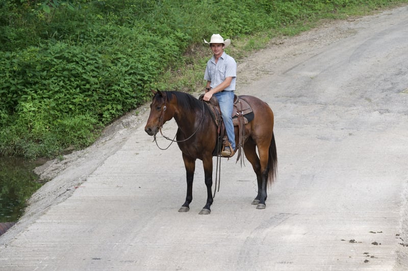 ONLINE-AUKTION GEBEN SIE IHRE GEBOTE UNTER PLATINUMEQUINEAUCTION DOT COM AB $3500 STARTGEBOT AUKTION ENDET AM 30. JUNI Cinch ist ein 15 Hände großer, 7 Jahre alter, registrierter AQHA-Wallach, der alle Formen der Welt besitzt und den schönsten Kopf hat, den man einem Pferd geben kann. Cinch ist ein Bay Roan mit allen Knochen und Muskeln, er ist für die Ewigkeit gebaut. Cinch ist nicht nur einfach zum Aufwachen am Morgen mit seinem Aussehen, sondern ist ein absolutes Vergnügen zu reiten und von ihm begleitet zu werden. Er hat die stärkste Persönlichkeit aller Zeiten. Er ist immer der Erste, der am Tor steht und gesattelt oder gebürstet werden will, egal wie der Tag zuvor gelaufen ist. Wenn es um einen echten Allround-Wallach geht, erfüllt Cinch alle Kriterien. Er wurde in einem Jährlingsbetrieb zum Abseilen, Sortieren, Schaben und für die tägliche Arbeit auf der Ranch eingesetzt. All diese Aufgaben erledigt er sicher, bereitwillig und mit Leichtigkeit. Cinch hat auch schon viele lange Tage und frühe Morgen im Feedlot verbracht, wo er Rinder transportiert und gezogen hat. Ihm ist es nicht fremd, früh am Morgen gesattelt und den ganzen Tag geritten zu werden. Wenn es darum geht, sanft und sicher zu sein, ist Cinch Ihr Mann. Egal, ob Sie Anfänger oder Fortgeschrittener sind, er versucht nie, Sie zu übertrumpfen und ist immer bereit, mit Ihnen mitzukommen. Cinch ist die Art von Pferd, die man in der Scheune anbinden und die Kinder herumlaufen lassen kann, ohne sich Sorgen machen zu müssen, dass er sich erschreckt oder irgendeinen Blödsinn macht. Cinch wäre ein sehr wettbewerbsfähiges Ranch-Trail-Pferd, da er im wirklichen Leben mit dem Überqueren von Wasser, Baumstämmen, Brücken, dem Ziehen von Kälbern und dem Auf- und Absteigen in unwegsamem Gelände konfrontiert ist. Cinch ist auch in der Arena gut abgerundet, er ist in all seinen Gangarten so geschmeidig wie Glas, er nimmt beide Leinen auf und liebt das Wort "whoa"! Er ist einhändig geführt und sehr leicht zu bedienen. Ob Sie ihn nun jeden Tag oder nur einmal im Monat reiten, Cinch bleibt bei jeder Ausfahrt aus dem Stall das gleiche unkomplizierte, sichere und zuverlässige Pferd. Für weitere Informationen rufen Sie bitte an oder schreiben Sie Beau Slaughter 573-303-4087. Gefunden in Canyon, TX.
