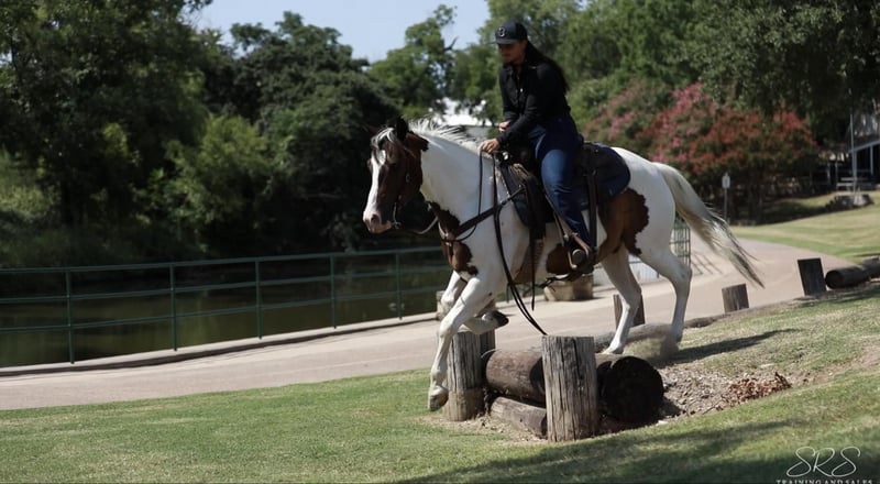 ONLINE AUCTION Place your bids at www.PlatinumEquineAuction.com Starting Bid $3500 Auction ends August 4th, 2024 Need a new saddle? Check out White Rock Saddles on our website or Facebook! EKPD Sand Peppy Doc aka “Scout” is a 2017 Registered Paint gelding standing at 15 hands. Scout is a a kind and gentle gelding who is willing to go all day long. He has lots of energy and makes a great using horse. Scout is willing to go through any obstacle you put in his way whether it’s flags, banners, tarps, water, lawn sprinklers and fountains, he is always ready to do what you ask when you ask it. I have used Scout to gather cattle, check fences, pony colts, trail ride, and he has always been a great companion. He rides in an arena and outside whether it’s by himself or in a group. I often take him out to check fences bareback in a hackamore and him and I both have the best time! He walk, trot and lopes both leads very easily off your leg cues. He mostly neck reins but will also listen to direct rein. Scout listens phenomenally to leg cues, he will turn around both directions and side pass left and right with ease making opening and closing gates off him a breeze. Scout is ready to be a using horse or could be finished to be one of the prettiest in the arena for gymkhanas, ranch rodeo, and ropings. He has an adorable gelding personality with excellent ground manners. He ties nicely in the barn or at the trailer to be groomed, saddled, and bathed. He hops on the trailer with ease and backs off very nicely. Scout can be outside in a pasture alone or with other horses, he also does well in a stall. He has recently been seen by my vet, farrier, dentist and chiropractor and was an excellent citizen for them all. Scout is an excellent horse that is always ready to work and be pointed in the next direction by his rider. For more information or questions please contact Sydney with SRS Training and Sales at (518) 935-8282. Scout is located in Granbury, TX. If you love Scout and are not local I am happy to help arrange shipping options that are quick and affordable all across the U.S. ONLINE AUCTION Place your bids at www.PlatinumEquineAuction.com Starting Bid $3500 Auction ends August 4th, 2024 Need a new saddle? Check out White Rock Saddles on our website or Facebook!