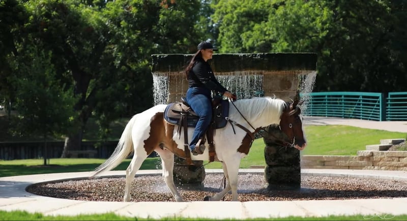 ONLINE AUCTION Place your bids at www.PlatinumEquineAuction.com Starting Bid $3500 Auction ends October 6th, 2024 Need a new saddle? Check out White Rock Saddles on our website or Facebook! “Scout” or EKPD Sand Peppy Doc is a 2017 Registered Paint gelding standing at 15 hands. Scout is a a kind and gentle gelding who is willing to go all day long. He has been started on the barrel and pole patterns. I have taken him to several gymkhana events and he has proven himself to be pretty seasoned going new places. He is calm cool and collected in the warm pen no matter who I’m riding with. He has lots of energy and makes a great using horse. Scout is willing to go through any obstacle you put in his way whether it’s flags, banners, tarps, water, lawn sprinklers and fountains, he is always ready to do what you ask when you ask it. I have used Scout to gather cattle, check fences, pony colts, trail ride, and he has always been a great companion. He rides in an arena and outside whether it’s by himself or in a group. I often take him out to check fences bareback in a hackamore and him and I both have the best time! He walk, trot and lopes both leads very easily off your leg cues. He mostly neck reins but will also listen to direct rein. Scout listens phenomenally to leg cues, he will turn around both directions and side pass left and right with ease making opening and closing gates off him a breeze. Scout is ready to be a using horse or could be finished to be one of the prettiest in the arena for gymkhanas, ranch rodeo, and ropings. He has an adorable gelding personality with excellent ground manners. He ties nicely in the barn or at the trailer to be groomed, saddled, and bathed. He hops on the trailer with ease and backs off very nicely. Scout can be outside in a pasture alone or with other horses, he also does well in a stall. He has recently been seen by my vet, farrier, dentist and chiropractor and was an excellent citizen for them all. Scout is an excellent horse that is always ready to work and be pointed in the next direction by his rider. For more information or questions please contact Sydney with SRS Training and Sales at (518) 935-8282. Scout is located in Granbury, TX. If you love Scout and are not local I am happy to help arrange shipping options that are quick and affordable all across the U.S ONLINE AUCTION Place your bids at www.PlatinumEquineAuction.com Starting Bid $3500 Auction ends October 6th, 2024 Need a new saddle? Check out White Rock Saddles on our website or Facebook!