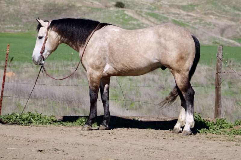 ONLINE AUCTION Place your bids at www.PlatinumEquineAuction.com Starting Bid $3500 Auction ends April 6th, 2025 Need a new saddle? Check out White Rock Saddles on our website or Facebook! If you’ve been searching high and low for your dream horse but haven’t found “the one” yet look no further because Ashton’s the one ! check out this beauty! He has it all: looks, a gentle demeanor, an incredible mind he’s truly the horse everyone needs in their barn. At 8 years old and a solid 15 hands tall, Ashton is the most conformationally correct horse you’ll ever lay your eyes on. His rare silver buckskin/rose grey coat shines like polished silver under the sun, perfectly complemented by his striking dark black mane, tail, and legs. Anyone can ride him; he makes any rider shine. Quiet and calm with no spook at all, Ashton rides slow and collected think of him as your very own equine partner for life. Whether it’s picking up leads flawlessly or executing fancy turns around in the arena with ease, he simply knows how to impress without any effort at all. Whether you’re out exploring tranquil trails or tackling rocky terrains while gathering cattle, he navigates with confidence and calmness that’s simply unmatched. Having worked cows in a variety of terrain he effortlessly navigates hills and trees while remaining unflappable around wildlife makes him stand out even more! On trail rides or just meandering along roadsides not a worry crosses his mind whether he’s riding alone or in a group. He’s also roped in branding pins and started out of the box beautifully! Nothing seems to ruffle his feathers; bridges, tires, flags none are obstacles for Ashton they’re merely playthings that add to his charm. This boy has been hauled and paraded through towns ridden by children; cars zooming past don’t faze him one bit! Ashton is the horse every rider dreams of. He handles time off well and is current vaccinations/coggins great for the farrier and vet. He enjoys a cozy stall on rainy day and loves being in the pasture as well. He is friendly enjoys being pampered loves his cookies patiently stands for grooming and tacking up. He is such a pleasure to be around. We have enjoyed every minute with this special horse. Please contact Longhorn Ranch Dina at 831-537-1915 located in Paicines, CA to meet this handsome boy! ONLINE AUCTION Place your bids at www.PlatinumEquineAuction.com Starting Bid $3500 Auction ends April 6th, 2025 Need a new saddle? Check out White Rock Saddles on our website or Facebook!